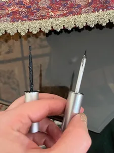 • چسپ مزه توپوینت ؛ این جنس فیک هست و موادش ۱ گرم هم نیست و فقط سر قلمش رو آغشته به چسب میکنه، اصل این چسب رنگش سورمه ای هست که این محصول رنگش مشکی و حالت چسبندگی بدی داره
