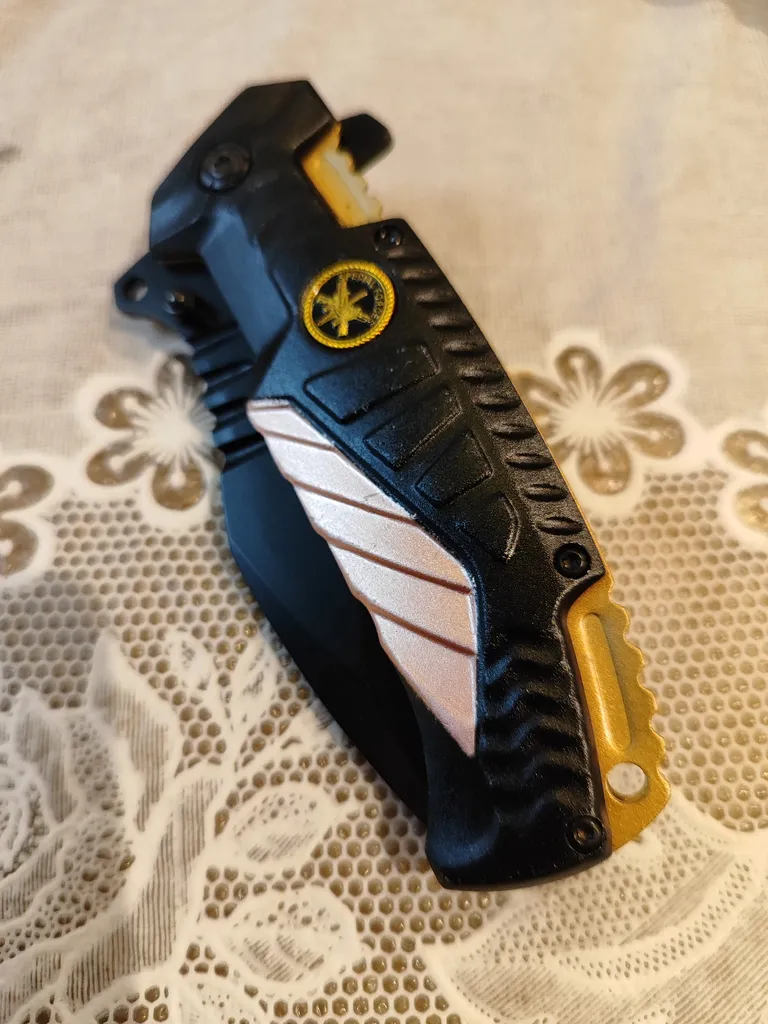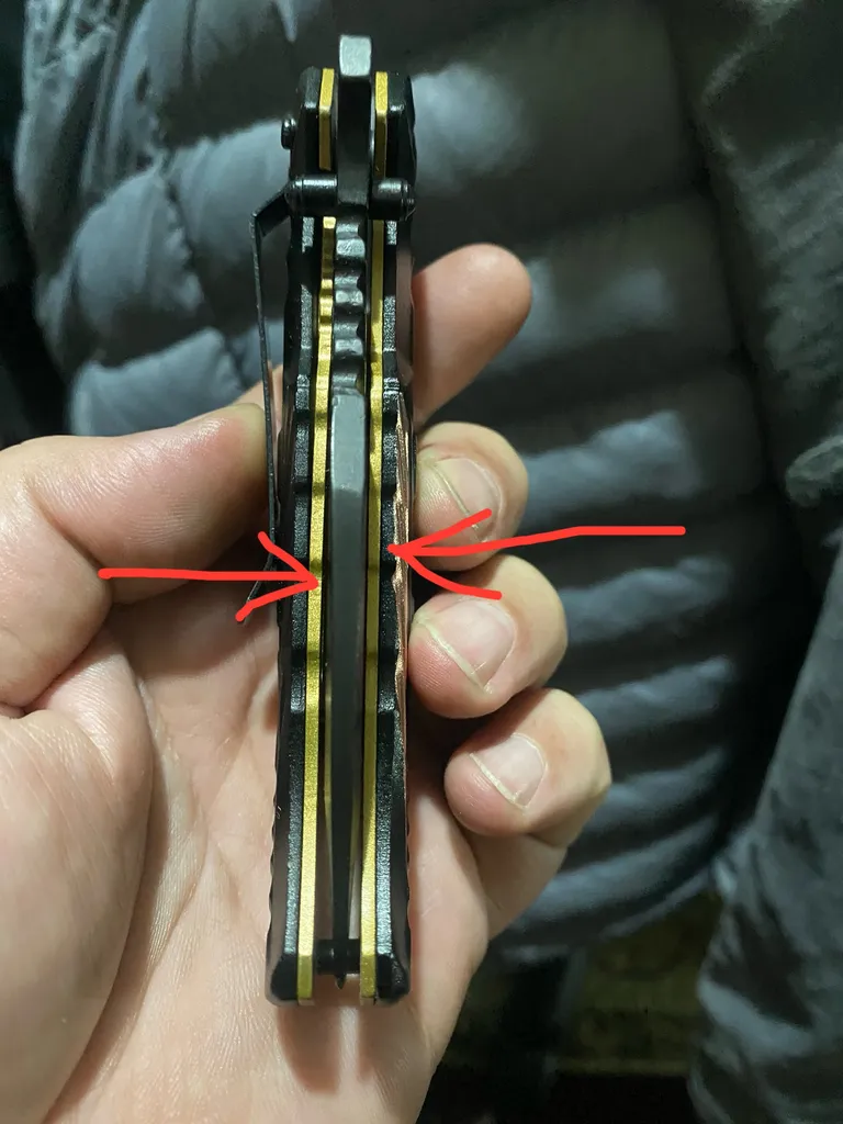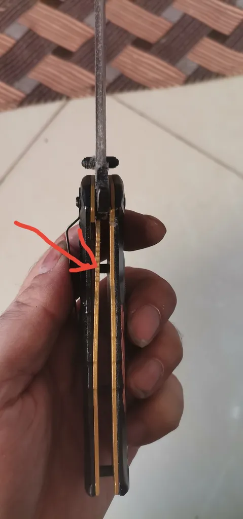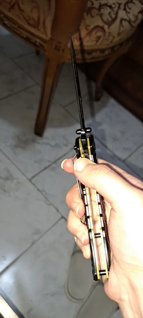 طریقه بسته شدن ؛ برای بستن این چاقو باید زیر اون رو نگاه کنید. یک در بخش داخلی دو ردیف فلز طلایی رنگ وجود داره. وقتی فلز سمت چپ رو نگاه کنید میبینید که به سمت راست کج شده اونو به سمت چپ فشار بدید و بعد چاقو رو ببندید. عکس رو هم میگذارم تا بهتر متوجه بشید. فقط مراقب دستهاتون باشید چون این چاقو از قبل تیز شده
