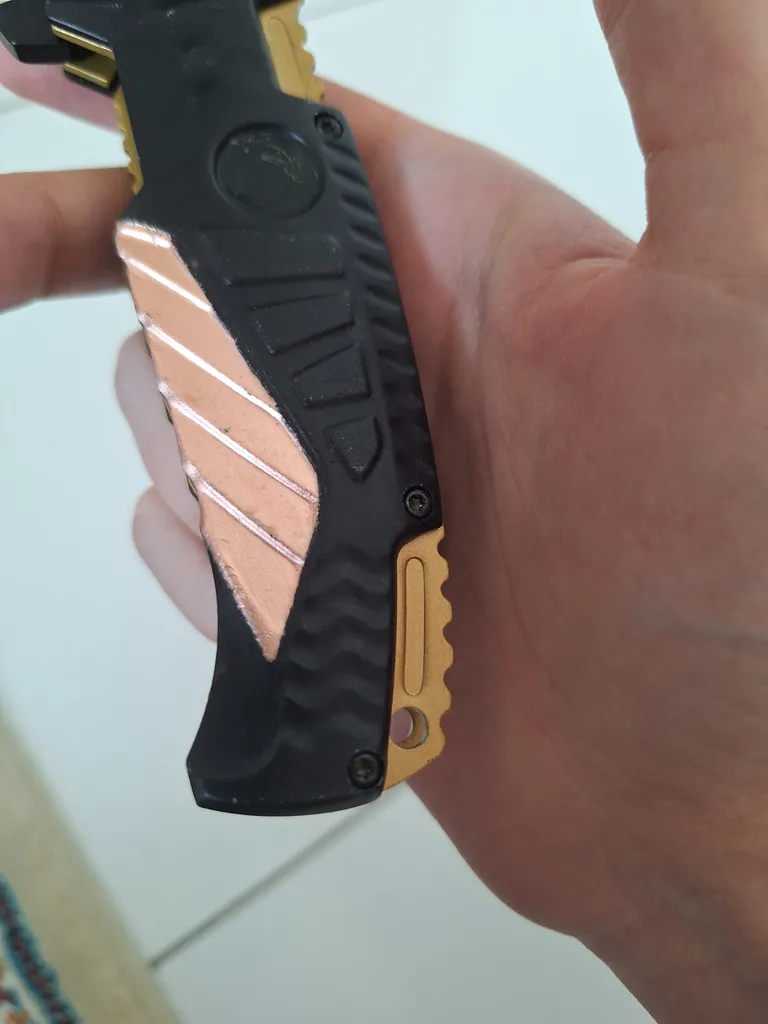 من چاقو باز نیستم و این اولین چاقوییه که گرفتم رخ کار قشنگه شبیه عکس هست درسته پول بی ارزش شده منتها نسبت به قیمتش چند تا نکته تو ذوقم زد یک اینکه رنگش رو قسمت دسته یکم زدگی داره و تو طولانی مدت قطعا میره،جزییاتش خیلی تمیز و با کیفیت کار نشده و رسید دستم پلاکش افتاده بود خودم چسبوندم دو اینکه یخورده سنگینه سه اینکه ضامنش بد جاییه و وقتی ازاد میشه چاقو تا ۹۰ درجه فقط باز میشه این دو مورد اخر سرعتشو میاره پایین از نظر تیزی هم متوسطه در کل کیفیت معمولی رو به پایین داره اگه دنبال یچیز عمری و حرفه ای باشین بهتره یکم بیشتر هزینه کنید