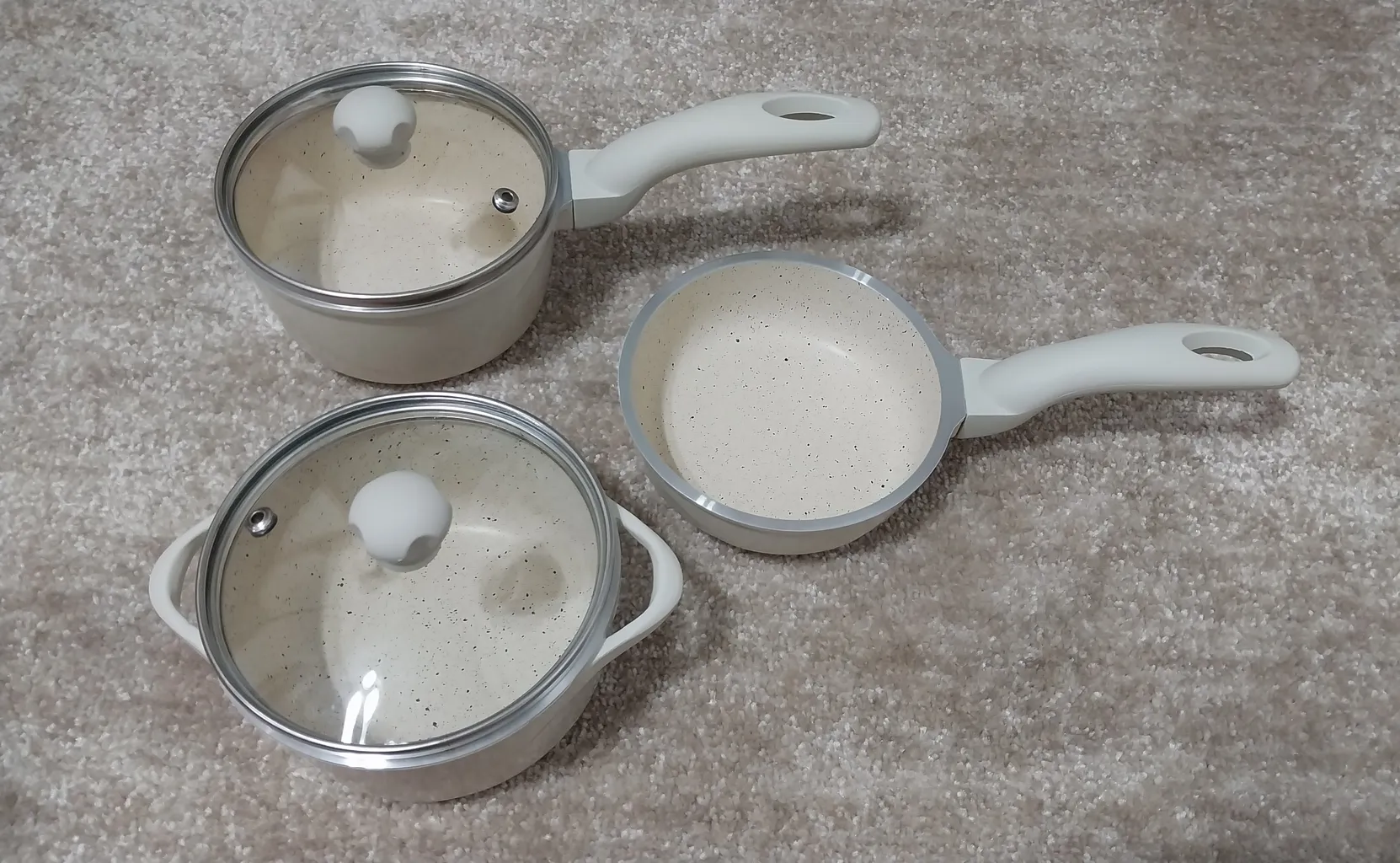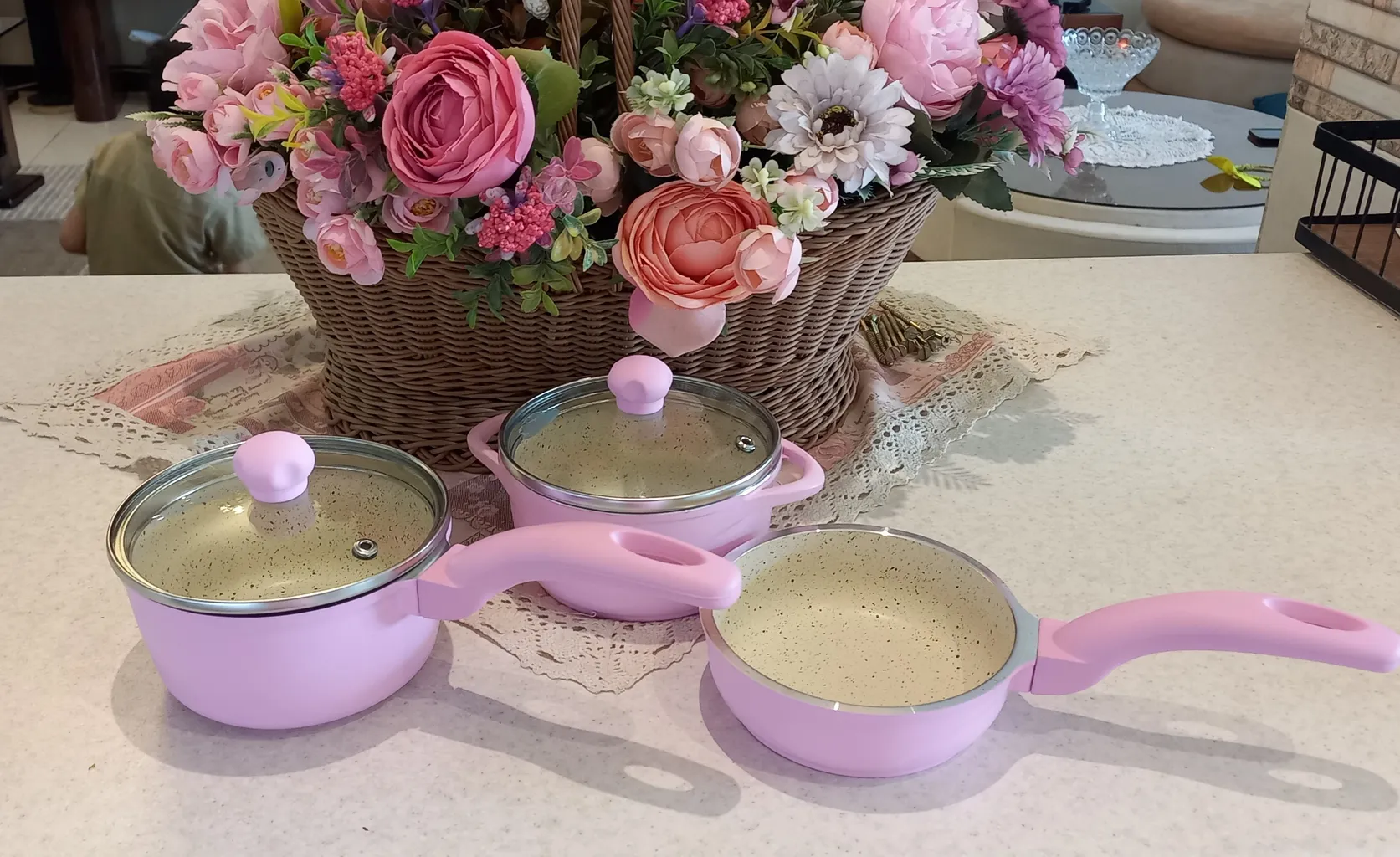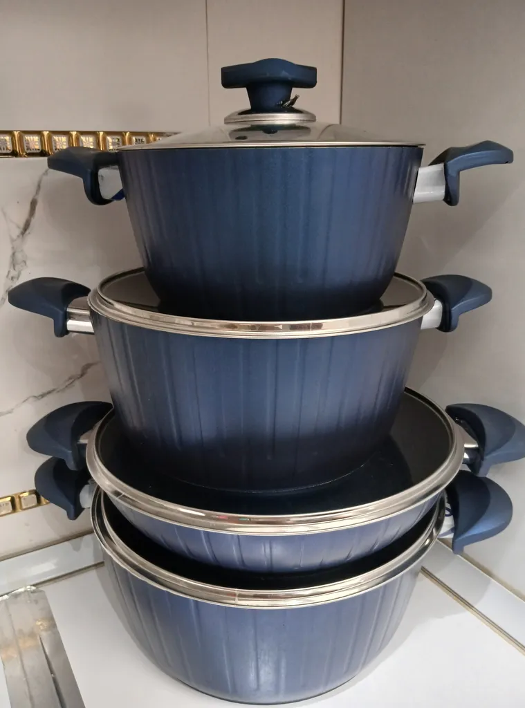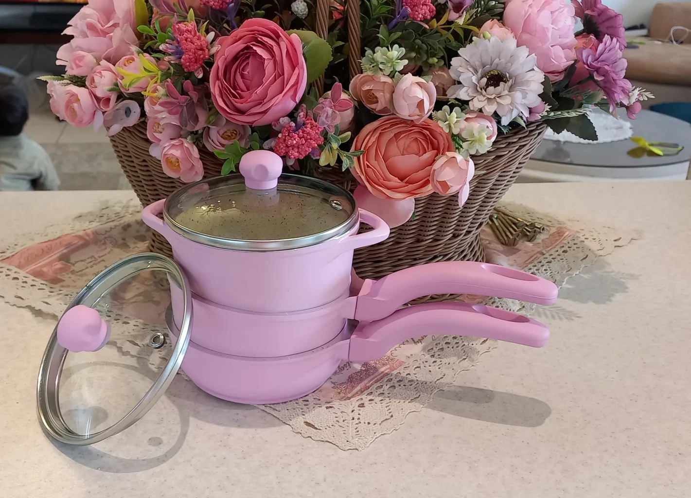 - ⬤ سرویس قابلمه 4 پارچه عروس : این سرویس قابلمه با طراحی مدرن و جنس آلومینیوم با کیفیت بالا، تجربه پخت و پز را بهبود میبخشد. نظرات خریداران نشان میدهد که این قابلمهها دارای روکش نچسب پیشرفتهای هستند که نه تنها به پخت یکنواخت غذا کمک میکند بلکه از چسبیدن مواد غذایی به سطح قابلمه جلوگیری میکند. ویژگیهای سختافزاری این سرویس شامل بدنهای با ضخامت مناسب برای توزیع یکنواخت حرارت و دستگیرههای ارگونومیک با قابلیت عایق حرارت است که استفاده ایمن و راحت را فراهم میآورد. برخی خریداران به نازکی بدنه قابلمهها اشاره کرده و نگرانیهایی درباره احتمال آسیبپذیری آنها در برابر ضربههای شدید داشتهاند. همچنین، نظرات خریداران درباره احتمال کاهش کارایی روکش نچسب پس از استفادههای مکرر نیز مطرح شده است. این سرویس با وزن سبک و طراحی جذاب، انتخابی ایدهآل برای عروسها و کسانی است که به دنبال کیفیت و کارایی در آشپزی هستند، اما برای حفظ کیفیت آن باید به مراقبتهای لازم توجه کرد و از ابزارهای مخصوص برای پخت استفاده نمود.