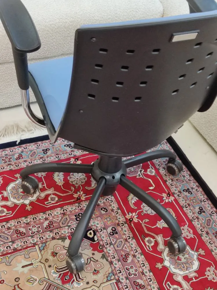 بنظرم صندلی پر ریسکی هست اول از همه باید بگم با استرس میشه بهش تکیه کرد چون جنس تکیه گاهش خیلی مقاوم نیست دومین مورد اینکه پارچه نشیمنش به شکلی هست که اشغال داخلش گیر میکنه ولی چرخ های روانی داره