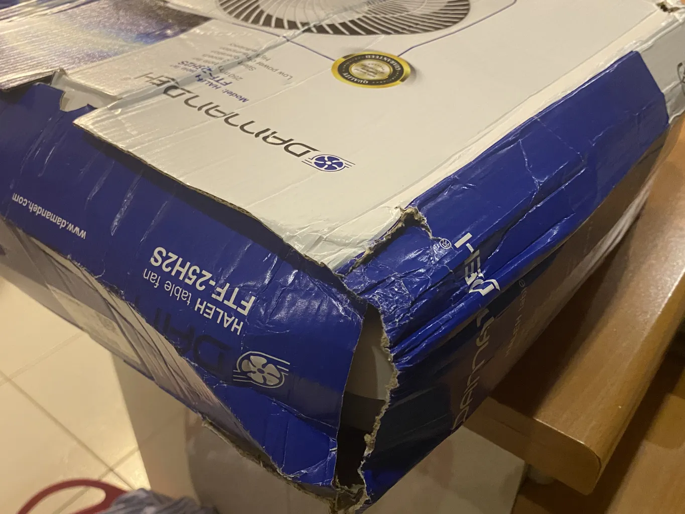 از چند جا شکسته ازش عکس گرفتم. بسته بندی داغون. کارتنش پاره شده