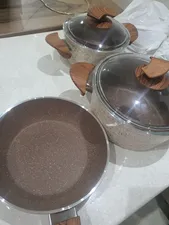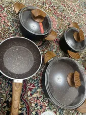 - ⬤ سرویس پخت و پز 5 پارچه اویز : این سرویس یکی از انتخابهای محبوب برای آشپزها به شمار میآید که علاوه بر طراحی زیبا، به دلیل کیفیت ساخت بالا و ویژگیهای فنی منحصر به فرد، توجه خریداران را جلب کرده است. نظرات خریداران نشان میدهد که این سرویس از جنس استیل ضد زنگ با روکش نچسب ساخته شده که مقاومت بالایی در برابر خوردگی و حرارت دارد. قابلیت تحمل دماهای بالا تا 300 درجه سانتیگراد و طراحی ارگونومیک دستگیرهها، کار با این سرویس را بسیار راحتتر میکند. همچنین، برخی خریداران به ویژگیهای حرارتی این سرویس اشاره کردهاند که موجب توزیع یکنواخت حرارت میشود و در نتیجه پخت بهتری را ارائه میدهد. با این حال، نظرات خریداران همچنین به سنگینی بعضی از قطعات و نیاز به مراقبت ویژه در شستوشو اشاره کرده که ممکن است برای افرادی که به دنبال وسایل پخت و پز سبکتر هستند، مناسب نباشد. به طور کلی، نظر خریداران درباره "سرویس پخت و پز 5 پارچه اویز" مثبت است و این محصول به عنوان یک گزینه مطمئن و با کیفیت در بازار شناخته میشود، که با توجه به ویژگیهای فنی و تکنولوژی ساخت آن، میتواند انتخاب مناسبی برای آشپزهای حرفهای و خانگی باشد.