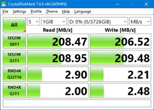 • بالانس خوب بین قیمت، کیفیت و حجم ؛ این هارد شاید اگر پارامترهای قیمت، کیفیت و حجم را بخواهیم در کنار هم در نظر بگیریم، در این لحظه بهترین محصول موجود در سایت باشد. بر اساس بسته بندی، داده های اسمارت و شرایط ظاهری بنظر نو می آید. متاسفانه هارد بدون هیچ گونه ضربه گیر داخل بسته ارسال شده بود و این شانس آسیب دیده بودنش را افزایش می دهد. در تصویر پیوست مشاهده می کنید که حدود 200 مگابایت بر ثانیه سرعت خواندن و نوشتن ترتیبی آن است