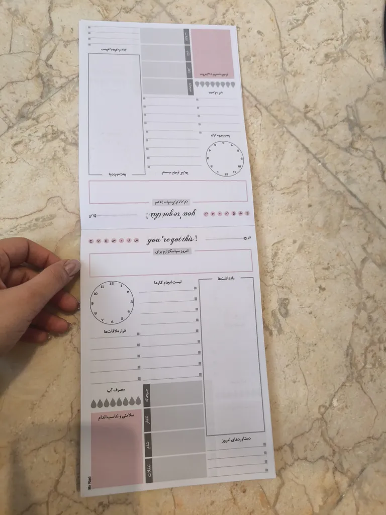 - ⬤ دفتر برنامه ریزی مستر راد : با توجه به افزایش گرایش کاربران به استفاده از ابزارهای سنتی برای مدیریت زمان، دفتر برنامهریزی مستر راد به عنوان یک گزینه ایدهآل برای تمرکز و سازماندهی افکار شناخته میشود. نظرات خریداران نشان میدهد که این دفتر دارای طراحی زیبا و کاربرپسند است که به راحتی در دست قابل استفاده است. صفحات این دفتر از کاغذ با کیفیت بالا و با وزن ۱۲۰ گرم ساخته شدهاند که نه تنها از نظر نوشتاری بسیار مناسب هستند، بلکه از لحاظ دوام و استحکام هم قابل اعتماد به نظر میرسند. فضای کافی برای نوشتن یادداشتها و برنامهها، به کاربران این امکان را میدهد که به سادگی ایدههای خود را ثبت کنند. با این حال، برخی از کاربران به وزن نسبتا بالا و عدم وجود بخشهای مشخص برای برنامهریزی هفتگی یا ماهانه اشاره کردهاند، که ممکن است در مواقعی کاربردی بودن آن را تحت تأثیر قرار دهد. همچنین، نبود تکنولوژیهای دیجیتال مانند بارکد یا QR کد برای پیگیری برنامهها، ممکن است برای کاربرانی که به دنبال ادغام ابزارهای دیجیتال و کاغذی هستند، یک نقص بزرگ تلقی شود. در نهایت، دفتر برنامهریزی مستر راد به عنوان یک ابزار مفید برای سازماندهی افکار و برنامهها معرفی شده است، اما نظرات خریداران نشان میدهد که ممکن است برای کاربرانی که به دنبال ویژگیهای خاص تری هستند، به اندازه کافی جامع نباشد.