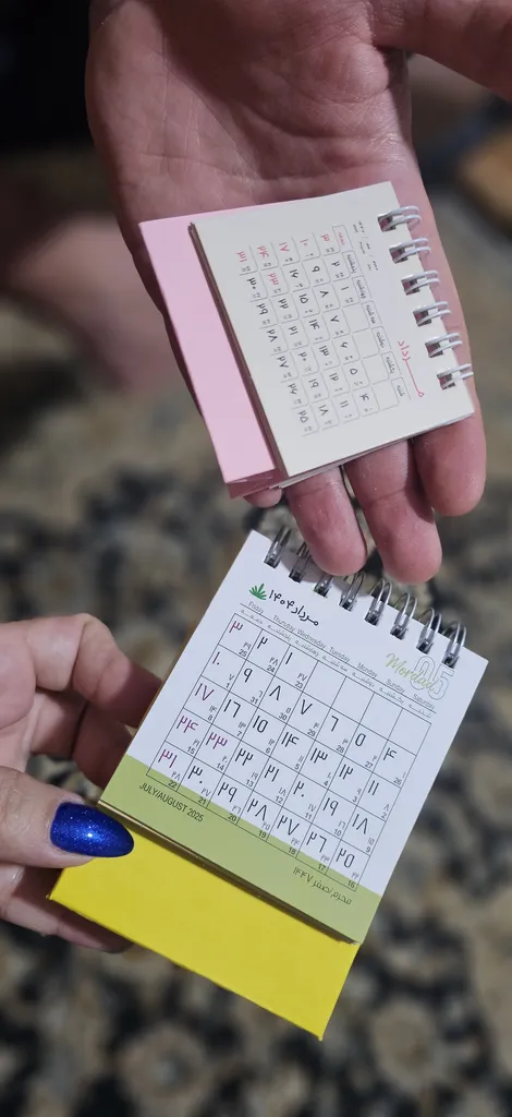 - ⬤ تقویم رومیزی پدیده نقش : با توجه به رشد استفاده از گوشیهای موبایل و اپلیکیشنهای تقویم دیجیتال، بسیاری از کاربران به دنبال تقویمهای فیزیکی هستند که حس ملموستری به آنها بدهد. خریداران "تقویم رومیزی برند پدیده نقش" عموماً نظر مثبتی درباره طراحی زیبا و کاربری آسان آن دارند و به عنوان یک ابزار سازماندهی در محیط کار و خانه از آن استفاده میکنند. ویژگیهای کلیدی این تقویم شامل کیفیت بالای چاپ با استفاده از تکنولوژی چاپ دیجیتال، صفحات مقاوم از جنس کاغذ با کیفیت بالا و طراحی جذاب و مدرن است که به راحتی میتوان در هر محیطی از آن بهره برد. نظر خریداران به جزئیات فنی مانند اندازه مناسب (حدود 30 در 15 سانتیمتر) و فضای کافی برای یادداشتبرداری (وجود فضاهای خالی در هر صفحه) اشاره کردهاند که این ویژگیها به کارایی آن افزوده است. همچنین، برخی از خریداران به قابلیتهای اضافی مانند تقویمهای سالانه و ماهانه، فهرست تعطیلات رسمی و یادآورهای روزانه اشاره کردهاند که به بهبود سازماندهی کمک میکند. اما در کنار این مزایا، برخی از خریداران به قیمت نسبتاً بالا و محدودیت در تغییر طراحی هر سال اشاره کردهاند که ممکن است برای برخی افراد جذابیت کمتری داشته باشد. بهطور کلی، "تقویم رومیزی برند پدیده نقش" انتخابی مناسب برای افرادی است که به دنبال زیبایی و کارآیی در یک محصول کاغذی هستند، اما باید به هزینه آن هم توجه کنند. نظرات خریداران نشان میدهد که این محصول ترکیبی از زیبایی و کارایی است که میتواند به عنوان یک ابزار مفید در زندگی روزمره مورد استفاده قرار گیرد.