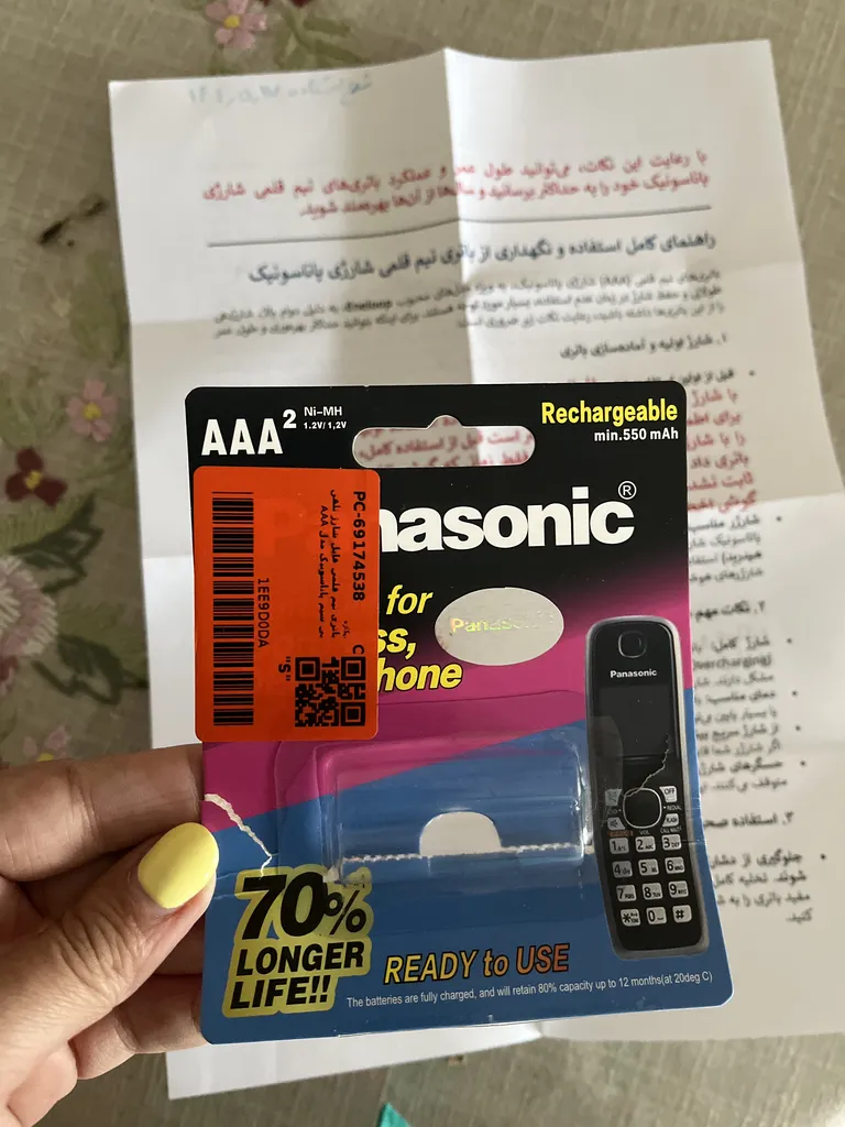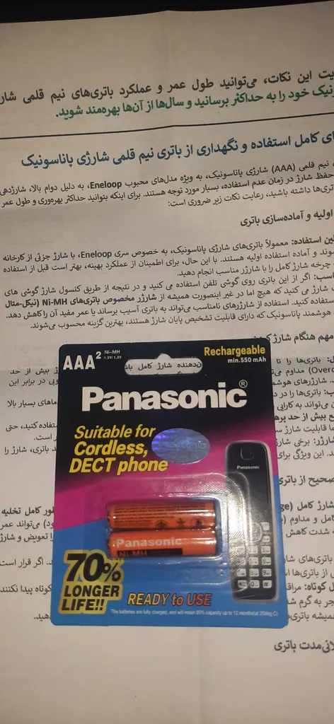 - ⬤ باتری تلفن پاناسونیک : باتریهای تلفن پاناسونیک به عنوان یکی از گزینههای محبوب در بازار، با ویژگیهای فنی و سختافزاری برجستهای شناخته میشوند. این باتریها معمولاً با ظرفیتهایی بین ۲۰۰۰ تا ۳۰۰۰ میلیآمپر ساعت طراحی شدهاند که توانایی تأمین انرژی برای استفادههای مکرر روزانه را دارند. نظرات خریداران نشان میدهد که آنها از عملکرد پایدار و قابلیت حفظ شارژ در طولانی مدت رضایت دارند. فناوری ساخت این باتریها اغلب شامل استفاده از سلولهای لیتیوم-یونی با تخلیه کمسری انرژی است که به افزایش عمر باتری کمک میکند. با این حال، برخی کاربران به زمان طولانی برای شارژ کامل و کاهش تدریجی ظرفیت باتری با گذر زمان اشاره کردهاند. از دیگر ویژگیهای مثبت این باتری میتوان به مقاومت در برابر دماهای مختلف و عدم ایجاد اثر "حافظه" اشاره کرد که به بهبود تجربه کاربری کمک میکند. به طور کلی، باتری تلفن پاناسونیک به دلیل کیفیت ساخت و کارایی مناسب، انتخابی محبوب در میان کاربران است، اما باید به برخی معایب آن نیز توجه داشت.