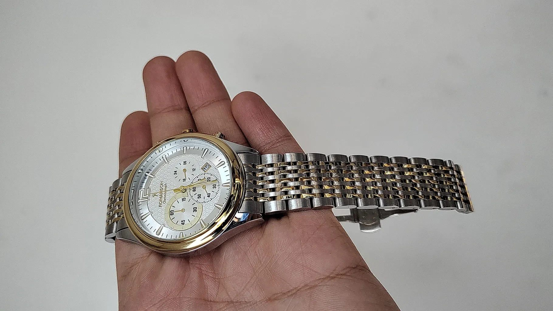 - ⬤ ساعت عقربه ای مردانه رومانسون : ساعت عقربهای مردانه رومانسون به عنوان یک انتخاب شیک و باکیفیت، با طراحی منحصر به فرد و استفاده از مواد اولیه با کیفیت نظیر استیل ضد زنگ و شیشهی معدنی مقاوم در برابر خراش، شناخته میشود. نظرات خریداران نشان میدهد که این ساعت با مکانیزم کوارتز دقیق خود، دقت بینظیری را در زمانسنجی ارائه میدهد. همچنین، ویژگیهای فنی مانند مقاومت در برابر آب تا عمق 50 متر و قابلیت نمایش تاریخ، جذابیت این محصول را دوچندان کرده است. با وجود وزن نسبی بالای آن، که برخی خریداران به عنوان یک معایب کوچک ذکر کردهاند، بسیاری از کاربران به استحکام و دوام آن اشاره کرده و آن را به عنوان یک ساعت با عمر طولانی معرفی میکنند. به طور کلی، ساعت عقربهای مردانه رومانسون با طراحی کلاسیک و تکنولوژی پیشرفته، گزینهای ایدهآل برای افرادی است که به دنبال ترکیب زیبایی و عملکرد در یک ساعت هستند.