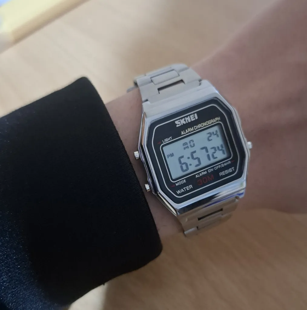 - ⬤ ساعت مچی دیجیتال اسکمی : ساعت مچی دیجیتال اسکمی به دلیل طراحی مدرن و قابلیتهای کاربردیاش، به یکی از گزینههای محبوب در بین کاربران تبدیل شده است. خریداران این ساعت عموماً آن را به عنوان یک محصول مقرون به صرفه و با کیفیت معرفی میکنند. این ساعت دارای نمایشگر LED با وضوح بالا است که خوانایی زمان را در شرایط نوری مختلف تضمین میکند. ویژگی ضد آب بودن این ساعت به کاربران این امکان را میدهد که در فعالیتهای روزمره، از جمله ورزش و شنا، از آن استفاده کنند. طراحی سبک و ارگونومیک آن به کاربران کمک میکند تا ساعت را به راحتی در طول روز بپوشند. نظرات خریداران همچنین به عمر باتری طولانی این ساعت اشاره دارند که به طور میانگین میتواند تا ۲ سال دوام بیاورد. عملکرد دقیق در نمایش زمان و قابلیتهای اضافی مانند کرنومتر و زنگ هشدار از دیگر ویژگیهای مثبت این ساعت هستند. با این حال، برخی از کاربران به محدودیت در امکانات هوشمند و عدم امکان اتصال به گوشی برای دریافت نوتیفیکیشنها اشاره کردهاند. همچنین، نظرات خریداران در مورد کیفیت ساخت و مواد استفاده شده در بدنه اشاره دارند که ممکن است در استفادههای طولانیمدت دچار آسیب شود. در نتیجه، ساعت مچی دیجیتال اسکمی میتواند گزینهای مناسب برای افرادی باشد که به دنبال ساعتی ساده و کارآمد هستند، اما برای کسانی که به امکانات پیشرفتهتر نیاز دارند، ممکن است گزینهی ایدهآلی نباشد.