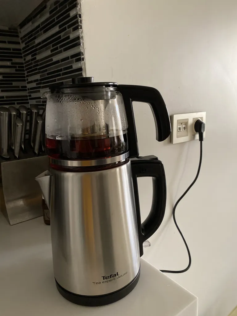 - ⬤ چای ساز تفال : چای ساز برند تفال به عنوان یکی از محبوبترین گزینهها در بازار برای تهیه چای با کیفیت شناخته میشود. نظرات خریداران نشان میدهد که این محصول به دلیل توان بالای گرمایش ۲۲۰۰ وات، توانایی جوشاندن آب در کمترین زمان ممکن را دارد، که باعث صرفهجویی در زمان میشود. طراحی مدرن و کاربرپسند این چای ساز با بدنه استیل ضد زنگ و قابلیت چرخش ۳۶۰ درجه، استفاده را برای کاربران راحتتر کرده است. همچنین، قابلیت تنظیم دما برای انواع چای مانند چای سبز، چای سیاه و دمنوشها، یکی از مزایای کلیدی این دستگاه است. از نظر تکنولوژی، این چای ساز به سنسورهای دما مجهز است که دقت بالایی در تنظیم دما ارائه میدهند. با این حال، برخی کاربران از حجم نسبتاً بالا و وزن سنگین آن ابراز نارضایتی کردهاند، که ممکن است در استفادههای روزمره کمی مشکلساز باشد. همچنین، نبود قابلیت خاموشی خودکار، نگرانیهایی در مورد ایمنی ایجاد کرده است. با این حال، نظرات خریداران به وضوح نشان میدهد که چای ساز تفال گزینهای مناسب برای کسانی است که به دنبال کیفیت و عملکرد عالی در تهیه چای هستند، هرچند که توجه به برخی معایب آن نیز ضروری است.