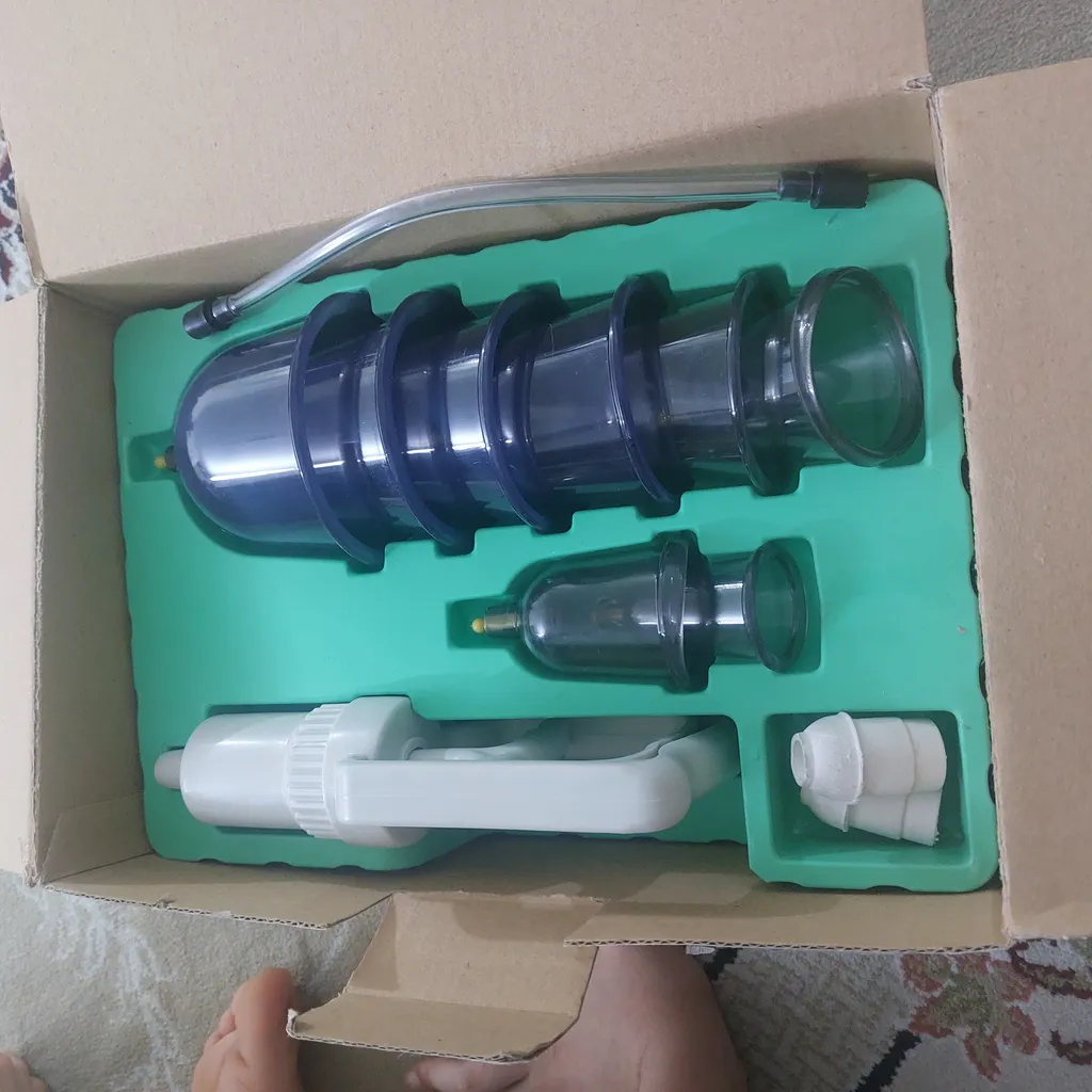 چیزی که برای من فرستادن با اون برندی که توی ویدئوی مگنت بود فرق داشت، یکی از کاپهای بزرگ ترک خیلی ریز و جزیی داشت که بعید میدونم مانع از عملکرد صحیحش بشه، به هر حال من چون برای اطراف مفاصل زانو و مچ پا میخواستم بادکشهای کوچیک بیشتر به کارم میاد ، اگه خواستید راحت تر باهاش کار کنید قبل از استفاده موضع را کمی چرب و یا خیس کنید.