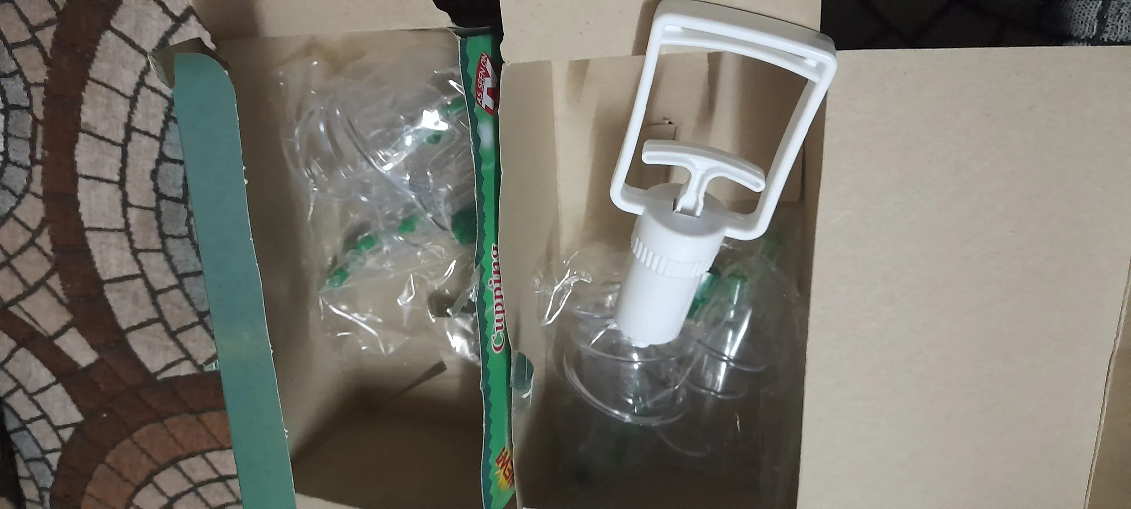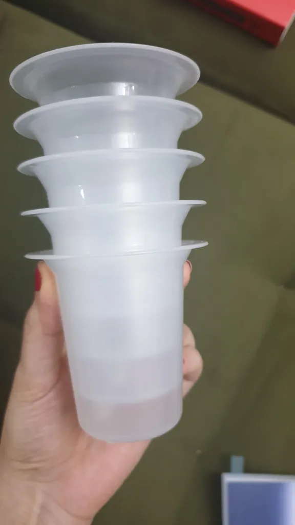 ولی بادکش دستش انگار شکسته بود و با لحیم درستش کرده بودن، خلاصه ترک داشت و تو ذوقم زد، دسته ای فشار میدی که باد رو بکشه هم سرمه ای بود ولی خود بادکش مشکی! احساس این بهم دست داد جنس دست دو دادن بهم😑 لیوانا تعدادش زیاده ولی خیلی ریزه میزه داره که کاربردی نیستن دوتا بزرگاش خوبن فقط، من بخاطر کمر درد گرفتم و فوری بود نیازم وگرنه مرجوع میکردم. لیوانا خط و خش هم دارن، واقعا جنس استفاده شده فرستادید؟! 😑