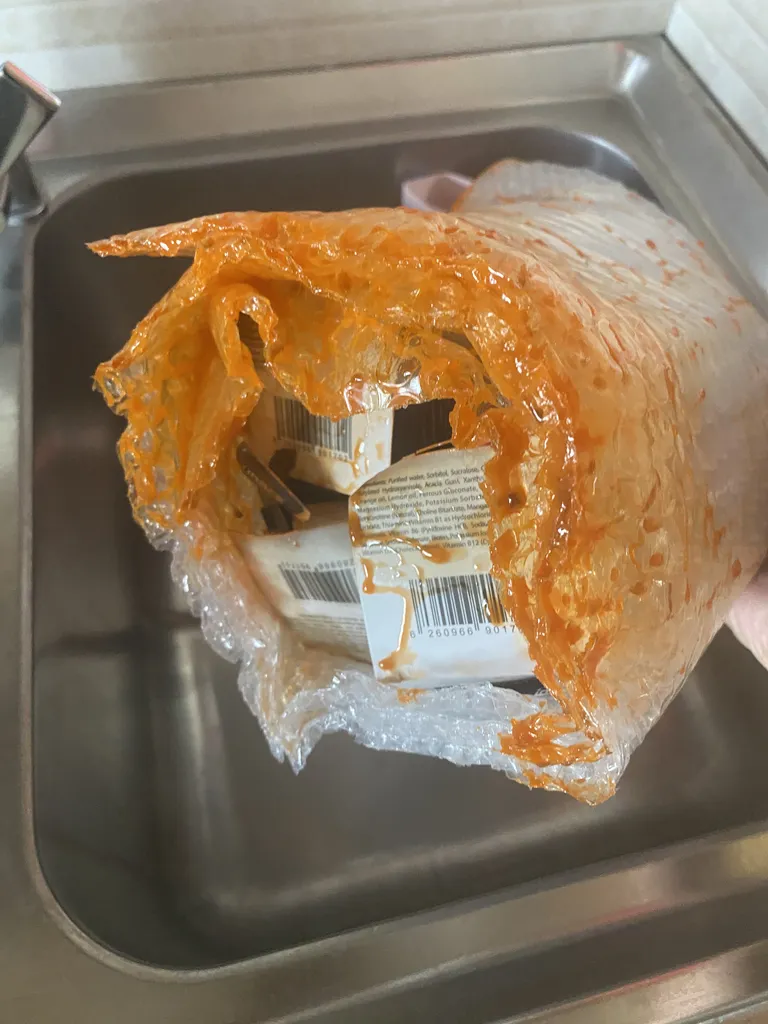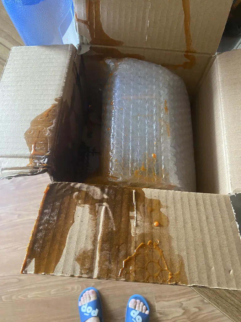 مثلاً اومده ارزون بفروشه یه جوری فرستاده نصف شربت ریخته