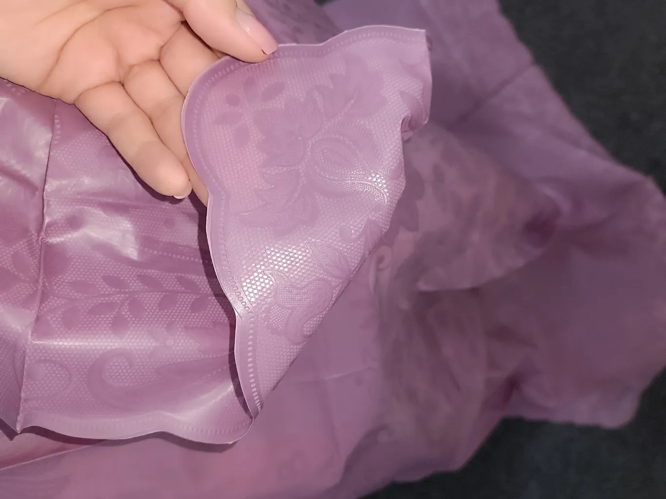 این سفره بسیار زیبا و لطیفه ، اما لکه ها به راحتی پاک نمیشند و اینکه اگر میخواین روی میز بندازین خوبه اما اگه میخواین داعم پهن و جمع کنید مناسب نیست چون جنس نازکی داره و خراب میشه. در ضمن سایزش کوچکتر از ۸ نفره، من روی میز ۶ نفره انداختم و کامل پوشش نمیده ولی دوسش دارم قشنگه. عکس میذارم ببینید