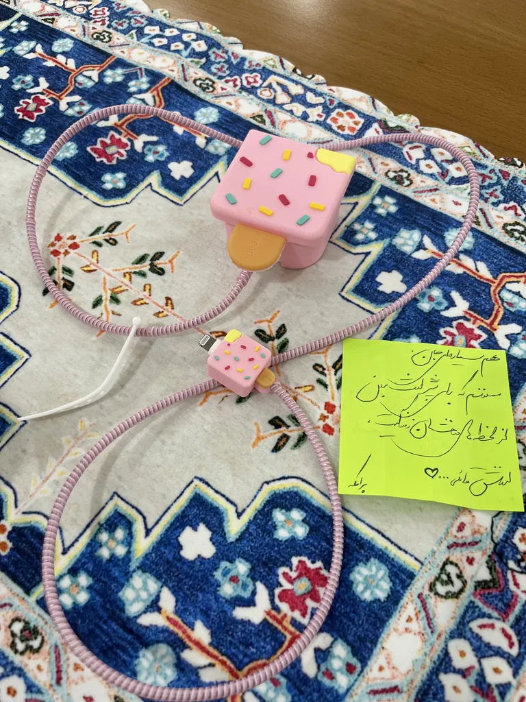 خریدار بدون نام : خیلی قشنگ بود و سایز شارژر بود و کامل بود من از وسیله ای که سیم شارژر رو می بنده تو تصویر استفاده نکردم