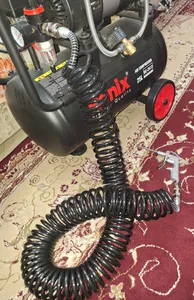 - ⬤ اتصالات و شلنگها : کیفیت اتصالات و شلنگها نیز از دیگر نکات مهم در انتخاب کمپرسور باد است. اتصالات محکم و بدون نشتی، عملکرد بهتری را تضمین میکنند و شلنگهای مقاوم در برابر فشار و دما، عمر مفید بیشتری دارند. برخی از خریداران به کیفیت اتصالات و شلنگهای همراه کمپرسور اشاره کردهاند و از وجود شلنگهای فنری و نازلهای متنوع ابراز رضایت کردهاند.