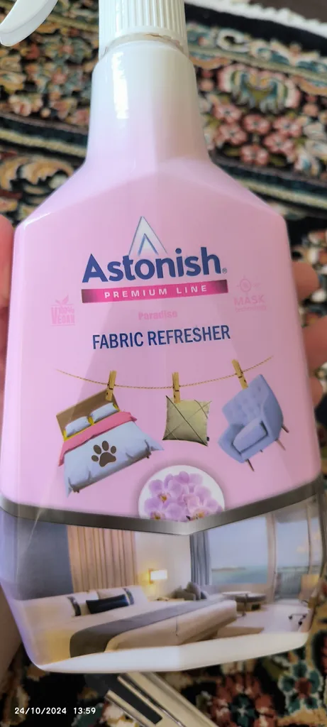 نسبت به قیمت هم حجم قابل قبولی داره و هم بوی مطبوع و خوبی داره و شدیدا توصیه میشه و مخصوص پارچه هست و بهتره روی صندلی های ماشین اسپری کنید ک بهتر بمونه