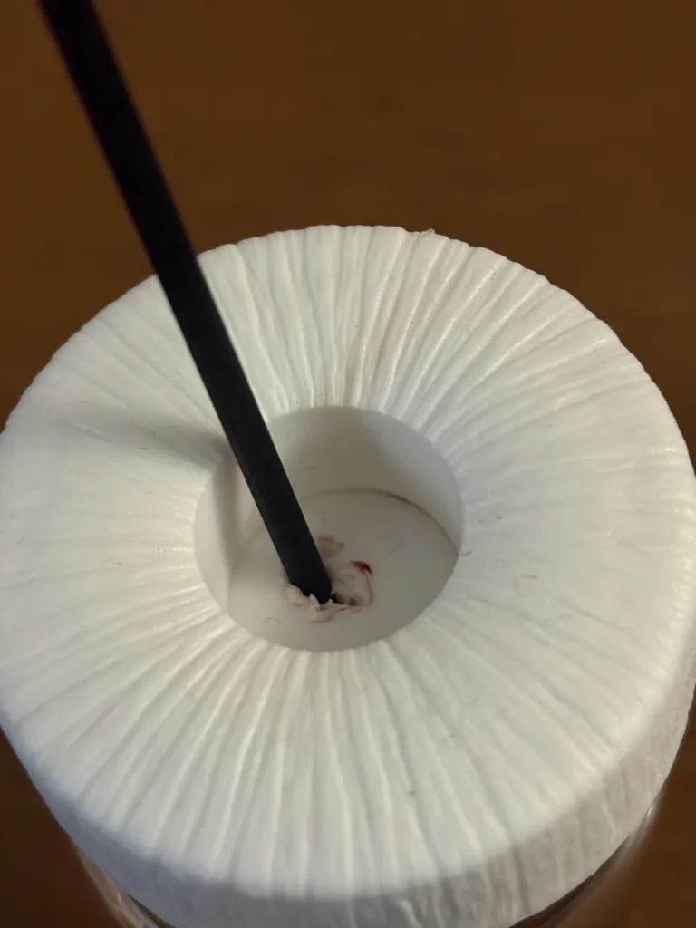 و یه نکته هم بگم که برای قرار گیری چوب ها سری رو با کمک نوک چاقویی که داغ کردین به اندازه و تعداد چوب ها سوراخ کنید تو دیر تر تموم بشه