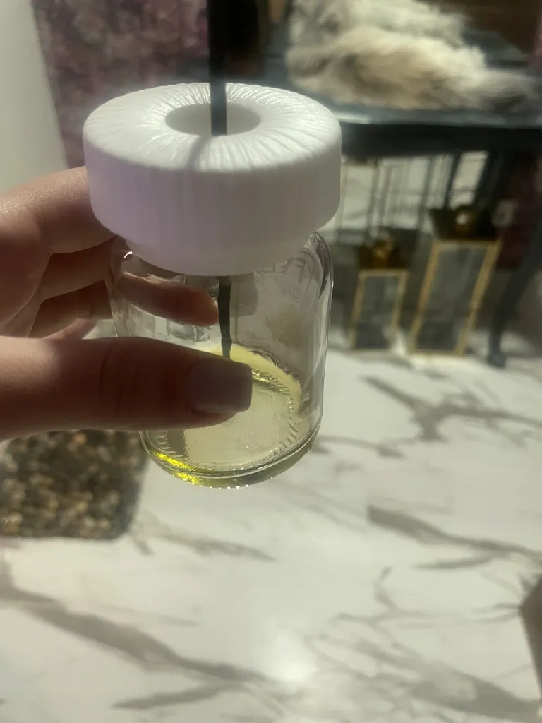 این عکس مقدار مصرف من بعد از یک ماهه به همراه دو چوبش اما مشکلی که داشتم پخش بوش بود که واقعا چیزی از بو حس نمیشد تا نزدیکش نمیرفتی , در کل با این قیمت و این توصیفات ارزش خرید نداره و پیشنهاد نمیکنم به دوستان برای خریدش