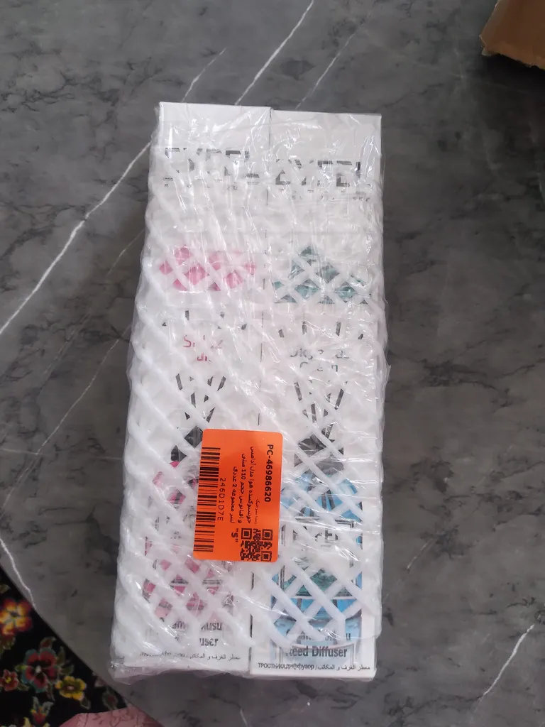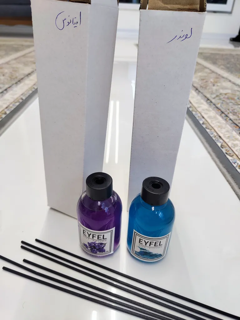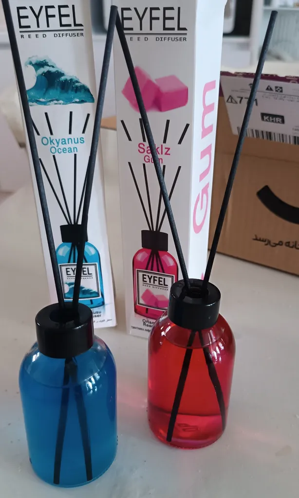 حسین موسی خانی : کالا خریداری شده مثل دفعه قبلی با همان کیفیت بود فقط تعداد نی ها ۳ تا بود و جعبه کالا مثل قبل و تصویر نبود و جعبه معمولی داشت . عکس جعبه خرید قبلی و فعلی را گذاشتم .برای دوام بیشتر از یک نی استفاده کنید و فقط نوک نی را وارد محلول کنید هر وقت سطح مایع کمتر شد دوباره اینکار را تکرار کنید تا مدت بیشتری از رایحه آن بهره مند شوید ، رایحه آدامس و اقیانوس رو من پسندیدم ، آدامس از اقیانوس رایحه اش رو بیشتر دوست داشتم البته رایحه ها سلیقه ای است