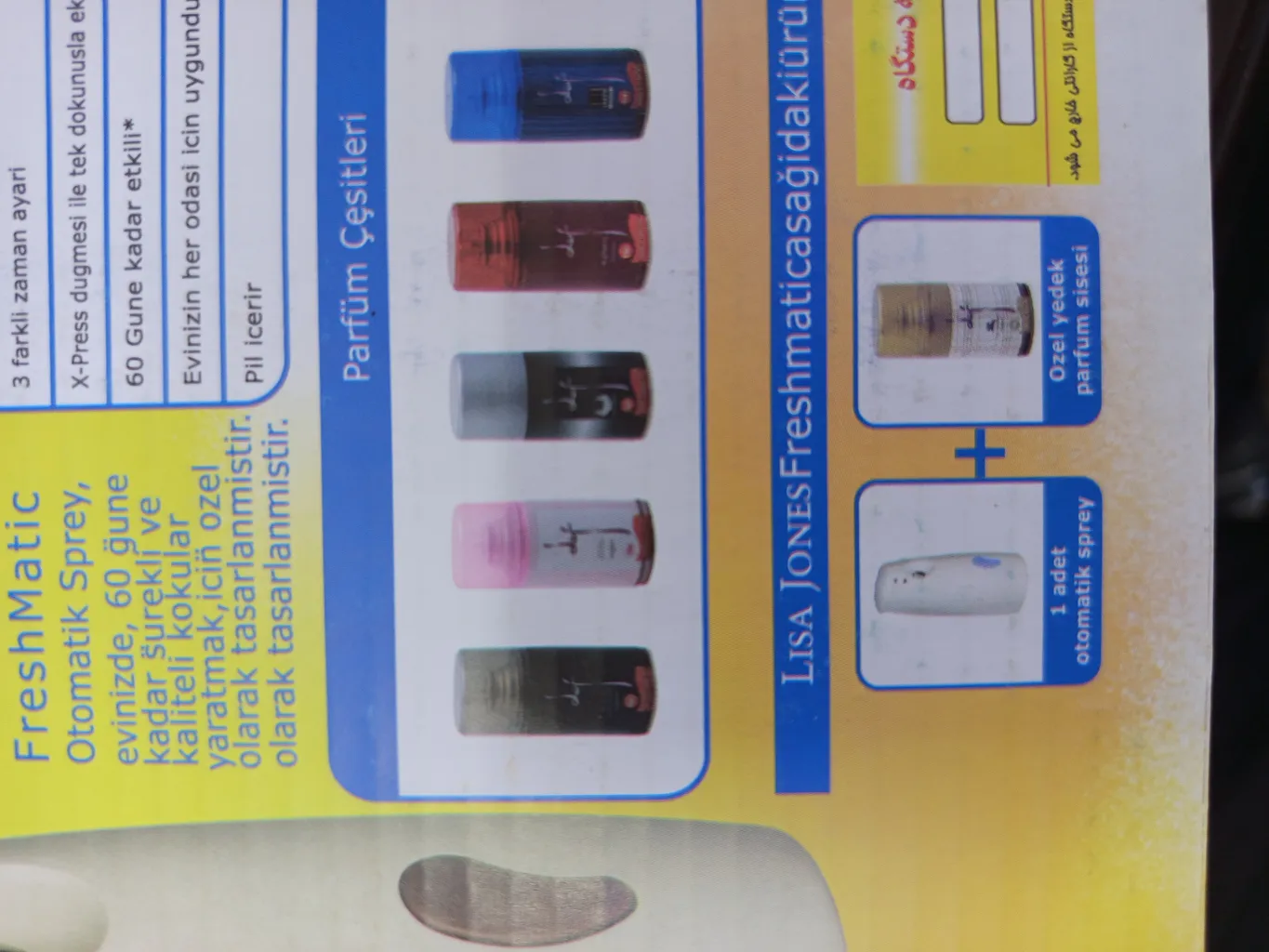 خریدار بدون نام : ۳۰ دی به دستم رسید عکسی که میذارم مال ۸ بهمنه که تموم شده، بو هم که اصلا پخش بو نداره فقط همون نزدیک خودش، تو اتاق ۳ در ۴ گذاشتم اصلا بوش حس نمیشه، فکر کنم برای داخل سرویس خوب باشه اونم کوچیکش که خیلیم زود تموم میشه، من سرشو اندازه نی هاش سوراخ کردم، دوتا نی هم بیشتر نداره