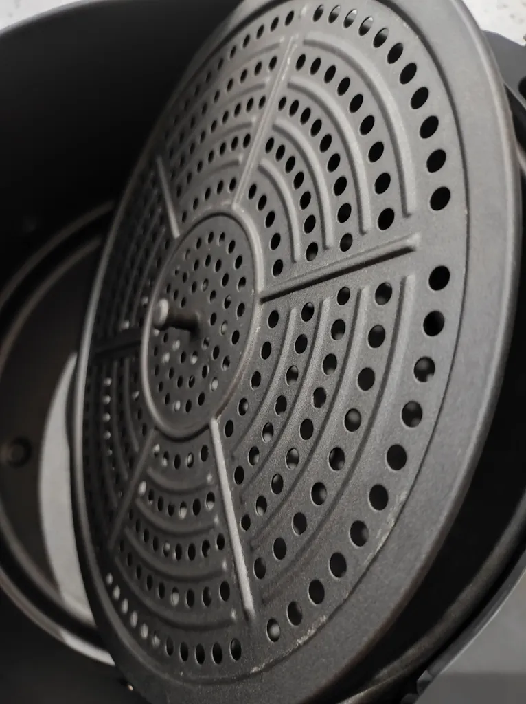 - ⬤ کیفیت قطعات داخلی : کیفیت قطعات داخلی مانند توری و دیگ سرخ کن تأثیر زیادی بر عملکرد و دوام دستگاه دارد. خریداران به کیفیت پایین برخی قطعات انتقاد کردهاند. قطعات با کیفیت بالا نه تنها عمر دستگاه را افزایش میدهند، بلکه به بهبود کیفیت پخت نیز کمک میکنند.