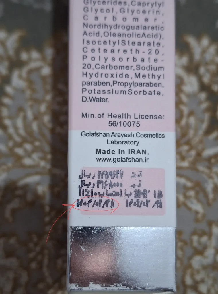 کرمی که فرستادن برداشتن روی پوکه کرمو تاریخشو سوزوندن کناره کرمه دیگه این برند میذارم ببینید درصورتی که خوب رو جعبه بلاخره تاریخو ادم می بینه دیگه تولیدش تقریبا قدیمی بود انقضاشم بالای یک سال پس نیاز به این حرکت نبود منم دیدم کرم تاریخ داره مشکلی ام نداره تخفیفم خوبم داشت نگه داشتم اما برای خوده دیجی کالا بده چون اگه اون حرکت سوزوندنو نمی کرد تاریخ مشکلی نداشت در کل