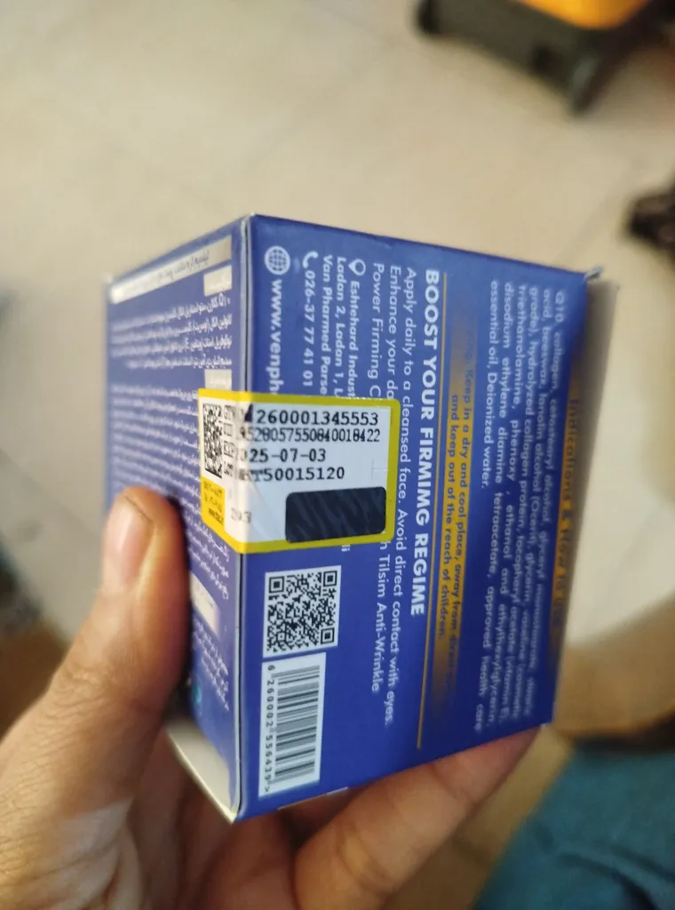 نگرانی من بخاطر اصل یا فیک بودنش بود که دیدم خداروشکر برچسب تایید وزارت دارو و غذا رو داره و کد بارکدش هم باکشور سازنده یکی بود و تولید کنندش هم برای شرکت کارن لیان بود