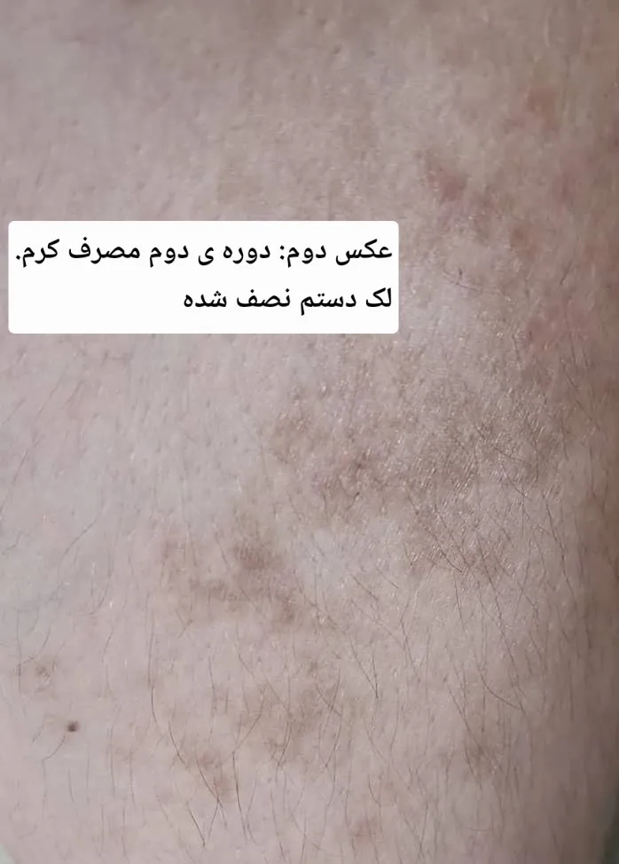 نتیجه گرفتم . یه لک قدیمی روی دستم داشتم .۳دوره استفاده کردم لک تقریبا از بین رفته ولی بر اساس توضیح پشتیبانی در بخش پرسش و پاسخ مجدد خریدم تا تغذیه ی پوستم انجام بشه. عکس از ۳دوره ی دستم به ترتیب قرار دادم که هر دوره کم رنگ تر شده. ممنون