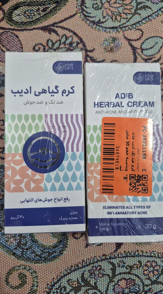 کرم ادیب ؛ به توصیه ی کاربر ها برای لک های جوش صورت خریدم .... فعلاً راضی ام . فقط حجم محصول از ۵۰ گرم به نظر کمتر میاد . اگر یه مقایسه ی ساده با کرم های ۵۰ گرمی انجام بدید متوجه میشید