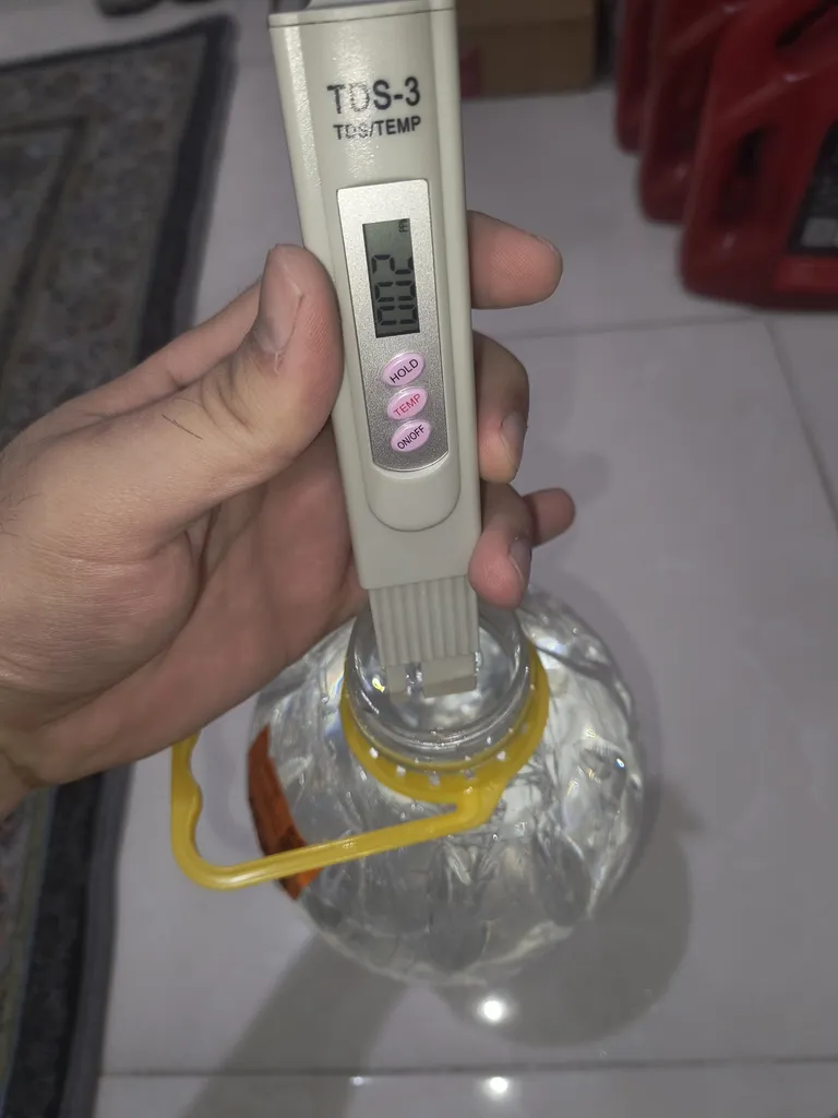 خریدار بدون نام : باسلام و احترام در قسمت مشخصات میزان TDS را کمتر از ۱۰ قید نموده است ولی متاسفانه روی دستگاه TDS سنج بنده در دمای ۲۰ درجه سانتیگراد، حدود ۹۰ppm نمایش داده شد. تصویر پیوست گویای صدق گفتار و ادعای اینجانب است.موفق باشید