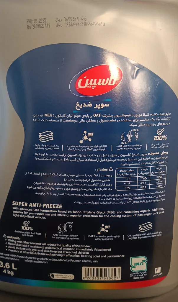 نظر و تجربه خرید ضدیخ خودرو کاسپیندر تاریخ ۰۲ مهر ۱۴۰۴