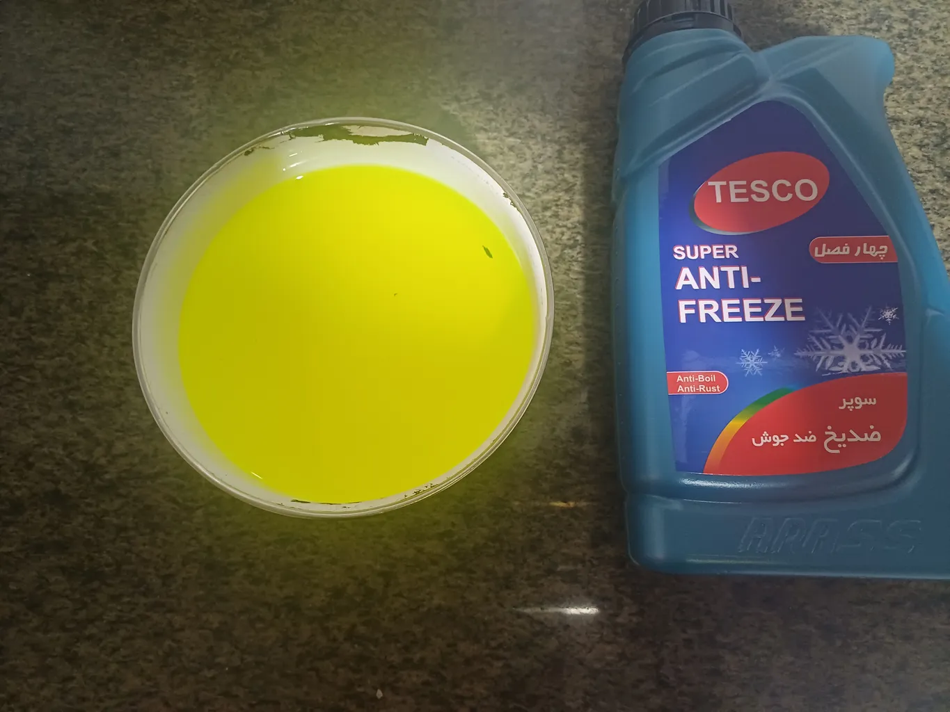 3-رقیق بودن بیش از حد مایع ضد یخ به این دلیل که بنده ۳۰ سال است هر سال ضد یخ خودرو را تعویض میکنم و تا به حال به این رقیقی ندیدم و کاملا مثل آب میماند