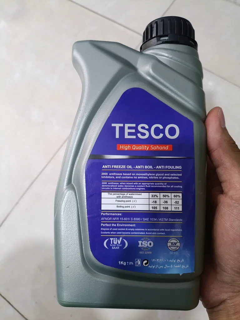 نظر و تجربه خرید ضدیخ خودرو تسکودر تاریخ ۲۵ آذر ۱۴۰۳
