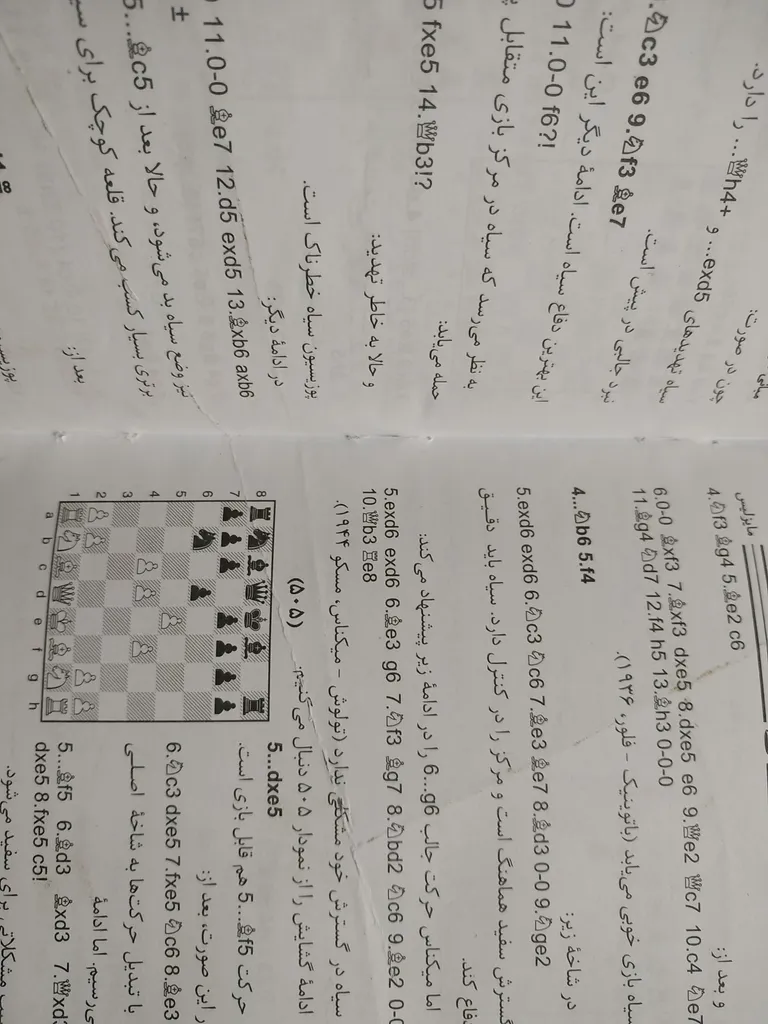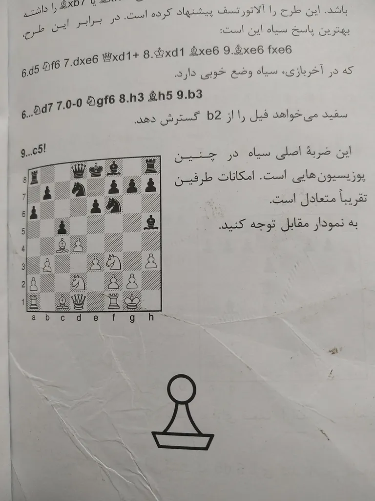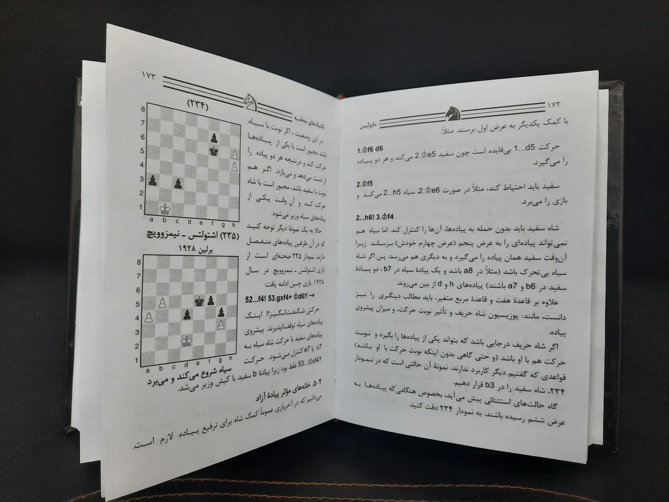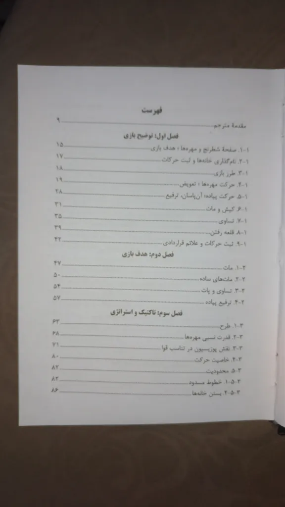 جلد کتاب بسیار با کیفیت هست ولی کتابی که برای من اوردن یکی از لبه های کتاب اسیب دیده بود و توی عکس هم مشخص کردم. و اینکه برگه های کتاب یه جورایی به هم دوخته شدن و این خیلی خیلی عالیه وقتی شما کتاب رو کامل باز میکنید احتمال در امدن برگه ها و خراب شدن کتاب خیلی کمه. در کل عالیه و اگه به یادگیری اصولی شطرنج علاقه دارید حتما این کتاب رو بخرید و کار کنید.