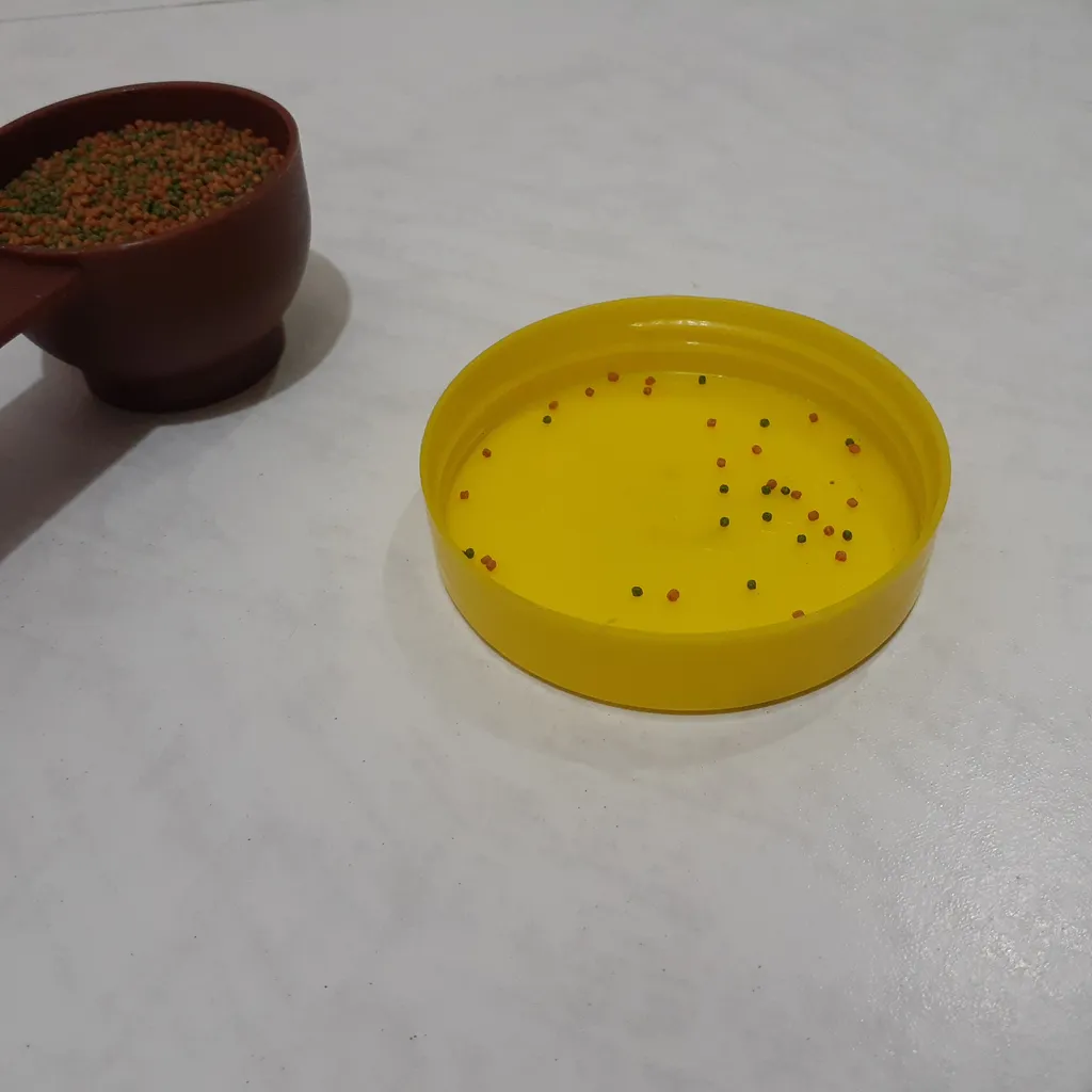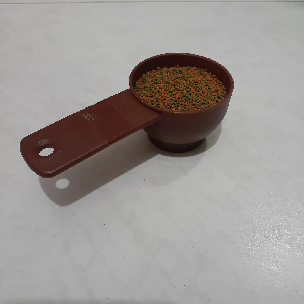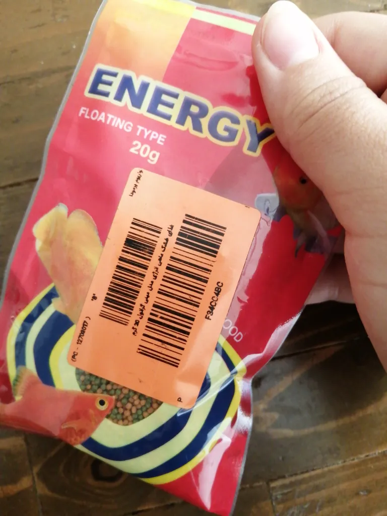اول از همه بگم که این غذای ماهی گوپی برای ماهی های بزرگ هستش، و کوچکتر ها (بچه ماهی ها) نمی تونن ازش بخورن.