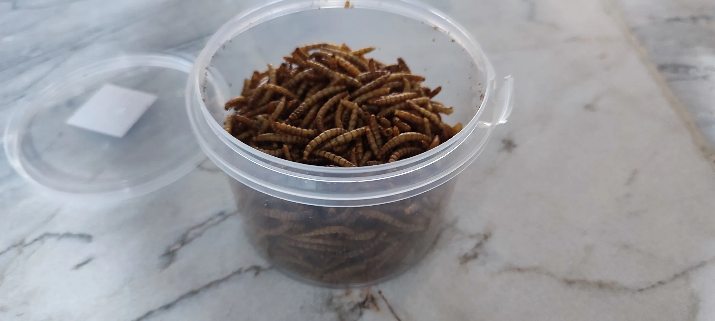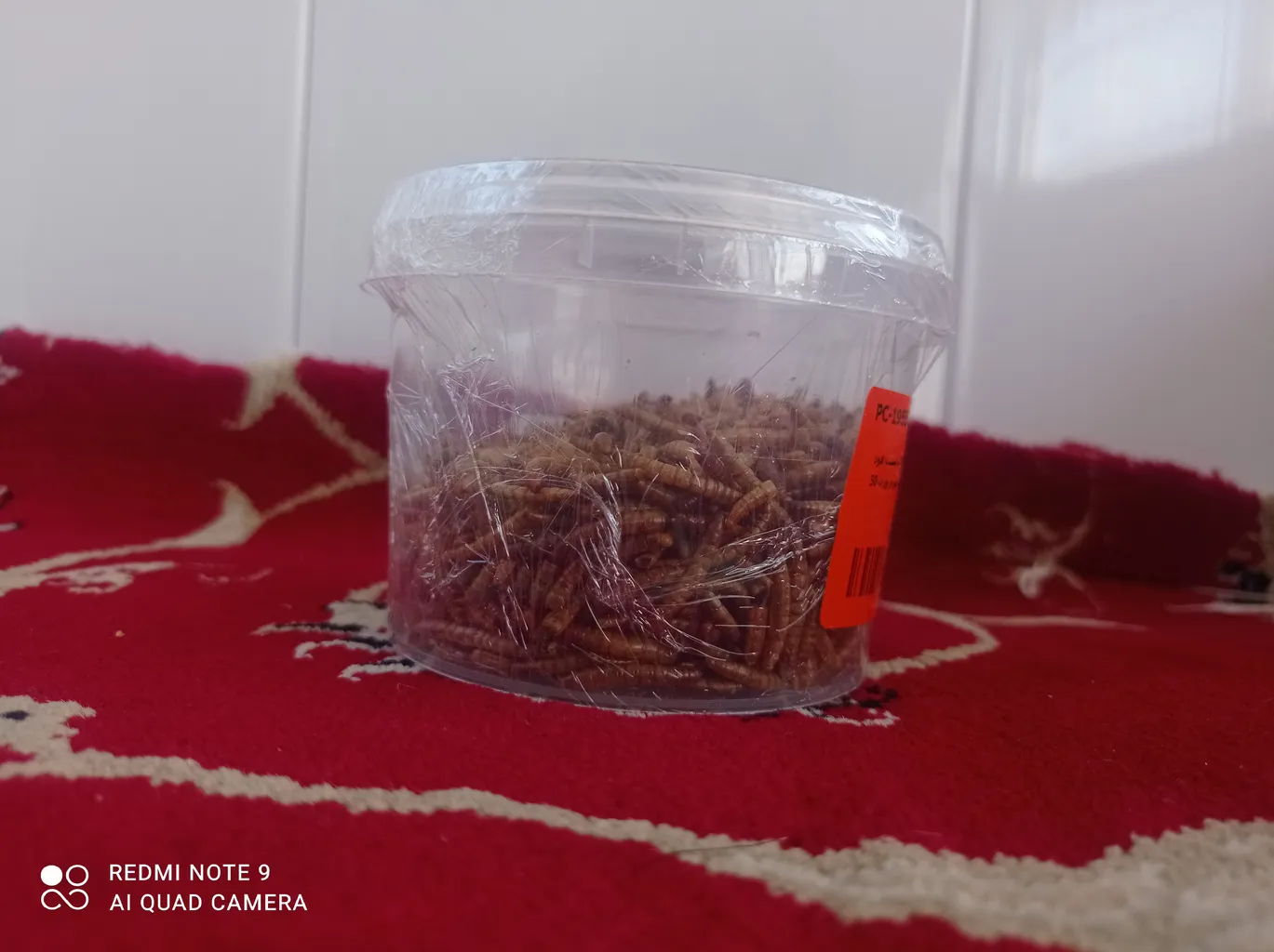 لیلا سهمدینی : میلورم ریز و تمیز ؛ دفعه قبلی برای فلاورم سوپرورم خریده بودم که عین همین بود فقط سایز لاروها خیلی درشت تر بود. البته فلاورم همون رو هم بدون مشکل میخورد فقط خوردنش طول میکشید و هربار باید چند دقیقه می ایستادم تا یکی رو بجوه و بتونم بعدی رو بندازم واسش. تصمیم گرفتم اینبار سایز کوچیک رو بگیرم تا راحت تر و سریعتر بخوره. خوشبختانه از هر نظر خوبه.یکدست هستن و پودر نشده. تولید جدیده و یه سال تاریخ داره. بوی خیلی بدی نداره و فلاورم میخوردشون. هرچند حس میکنم برای بزرگترها اشتیاق بیشتری نشون میداد(فلاورم حدودا هجده سانتی هست).