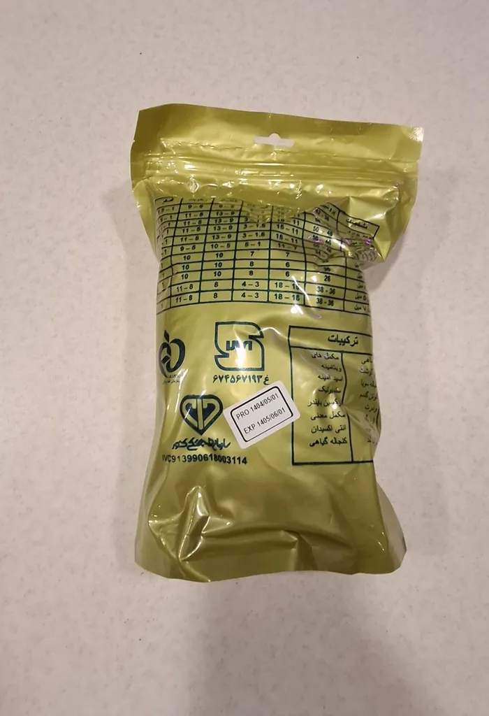 بسته بندی عالی و دارای تاریخ تولید و انقضا هست