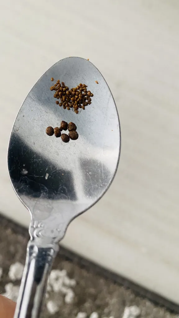 ولی برای بچه ماهی یکم باید با دست پودرکنی چون یکم درشته ولی برای بزرگ ها خوبه سایز دهانشون هست
