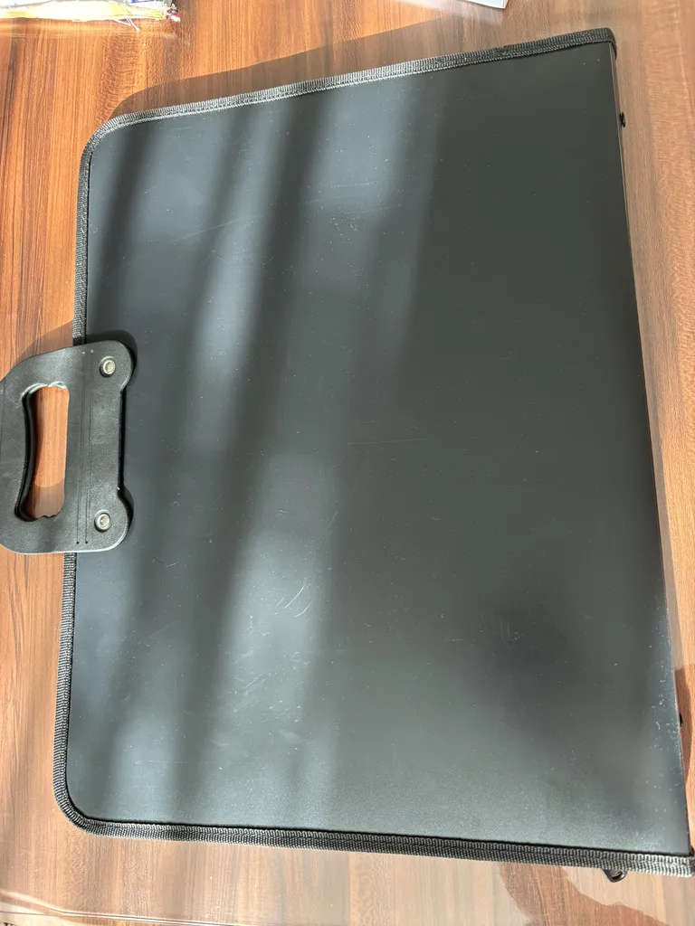 خریدار بدون نام : کار راه بندازه . فقط یه کم سنگین خیلی جنس خفنی م نداره خیلی معمولی و اینکه من یه تخته شاسی a3 گذاشتم که سایزش و ببینید و یه کش داخلش دوختن