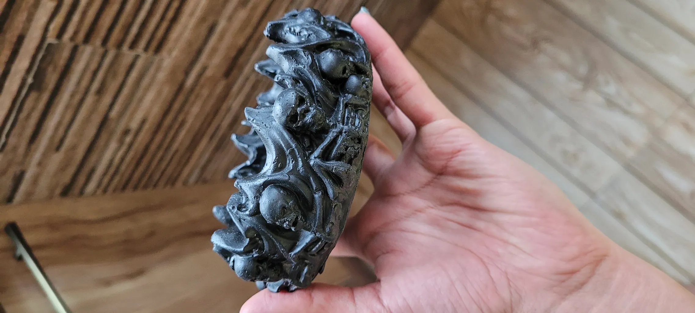 خریدار بدون نام : مشکی یک دست بود و چند جاییش شکستگی های کوچیک داشت، مثل عکس هایی که بقیه ی خریدارا فرستاده بودن، من با رنگ اکریلیک نقره ای خودم پتینه کردم شبیه عکس توی سایت شد