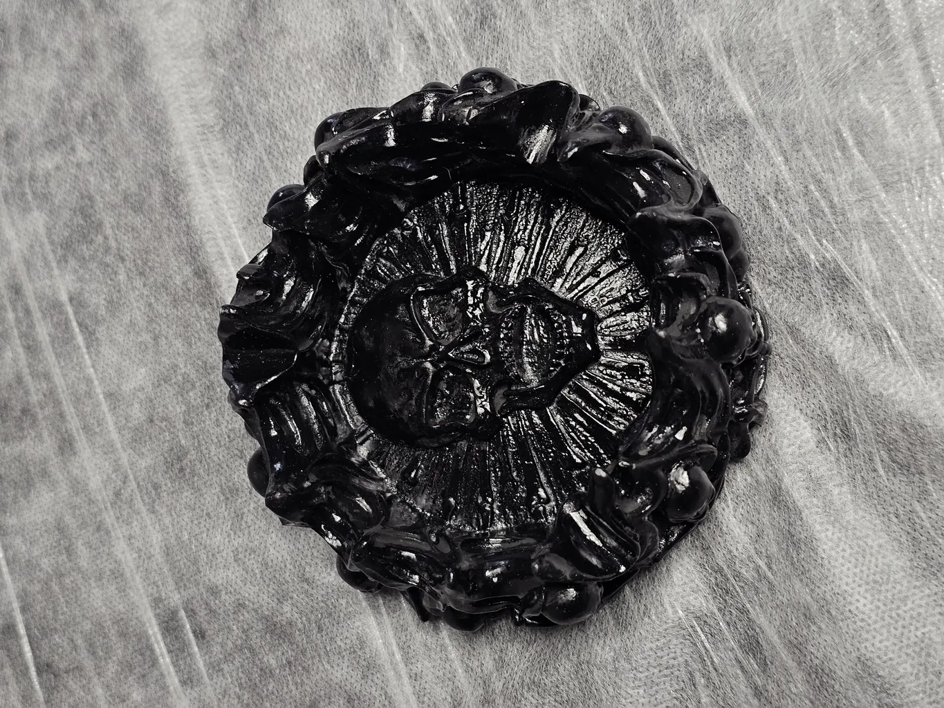خریدار بدون نام : معمولی ؛ اندازش بزرگتر از اونیه که تو عکسا به نظر میرسه. واسه من یه گوشش شکسته بود که خداروشکر تیکه شکسته شده داخلش افتاده بود و خودم با چسب چسبوندمش. جنسش بیشتر میخوره از گچ باشه تا رزین! خیلی هم کرکثیف بود. رنگش کامل مشکی براق نیست واسه من. یه جاهاییش هم گرده سفید داره که پاکم نمیشه. اصلا تمیز کار نکردن یعنی فقط یه چی میسازن که سریع رد کنن بفروشن بره و پول بیاد تو حسابشون