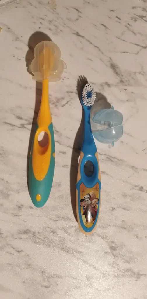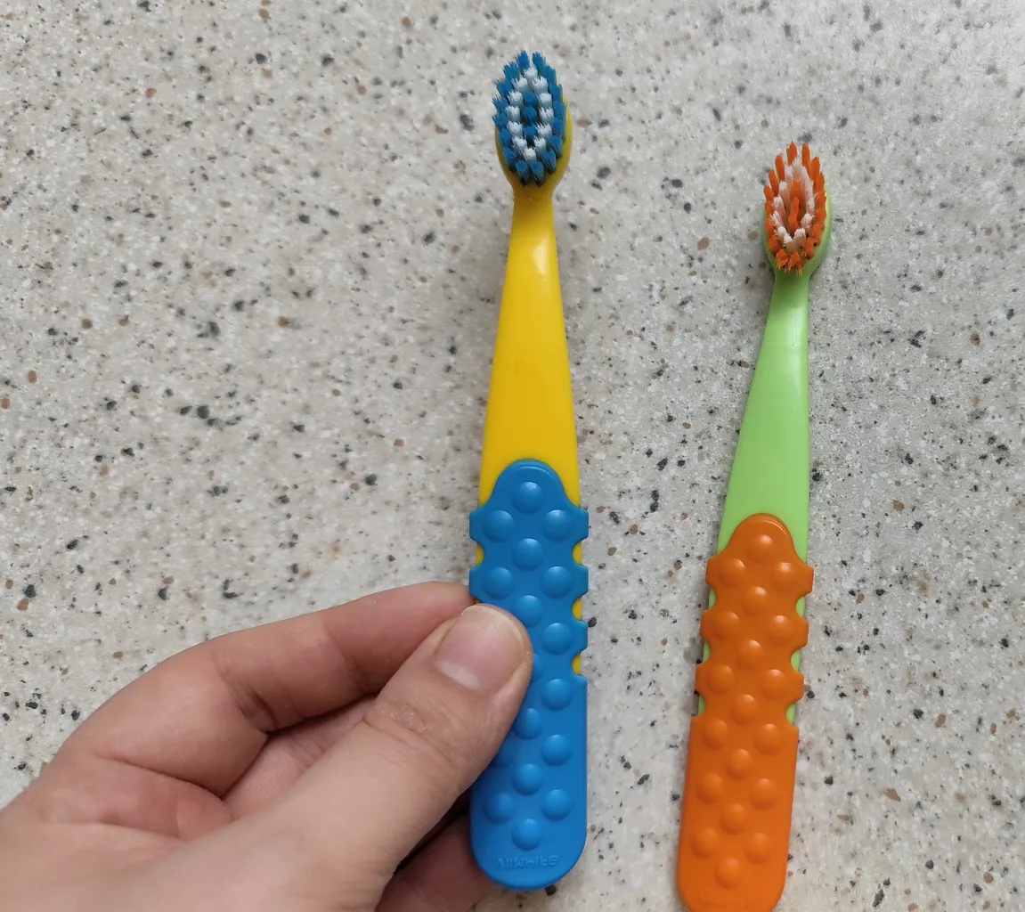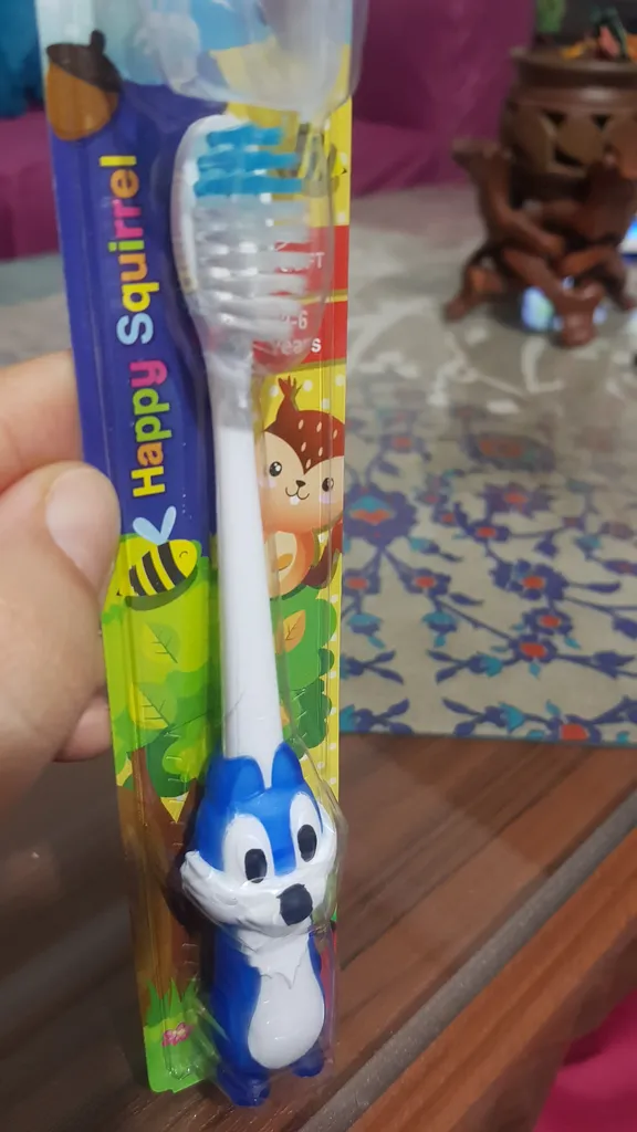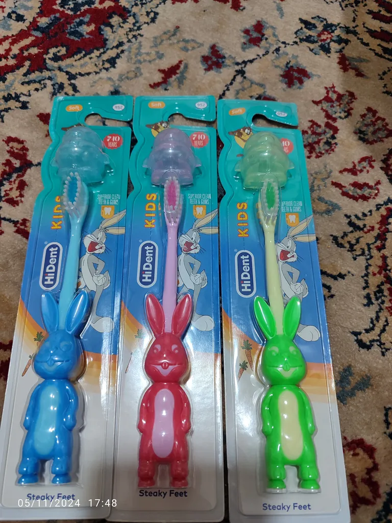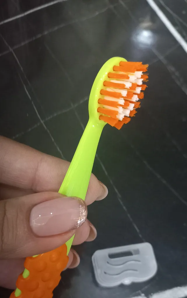 مسواک خوبیه . نرمه خوشرنگه قبلا نارنجیشو خریده بودم و اینبار آبی رنگشو گرفتم . بچم خیلی خوشش اومد بخصوص دسته پهن و راحتی داره و با کیفیته. دقت کنید بر اساس رنگ دسته مسواک انتخاب کنید