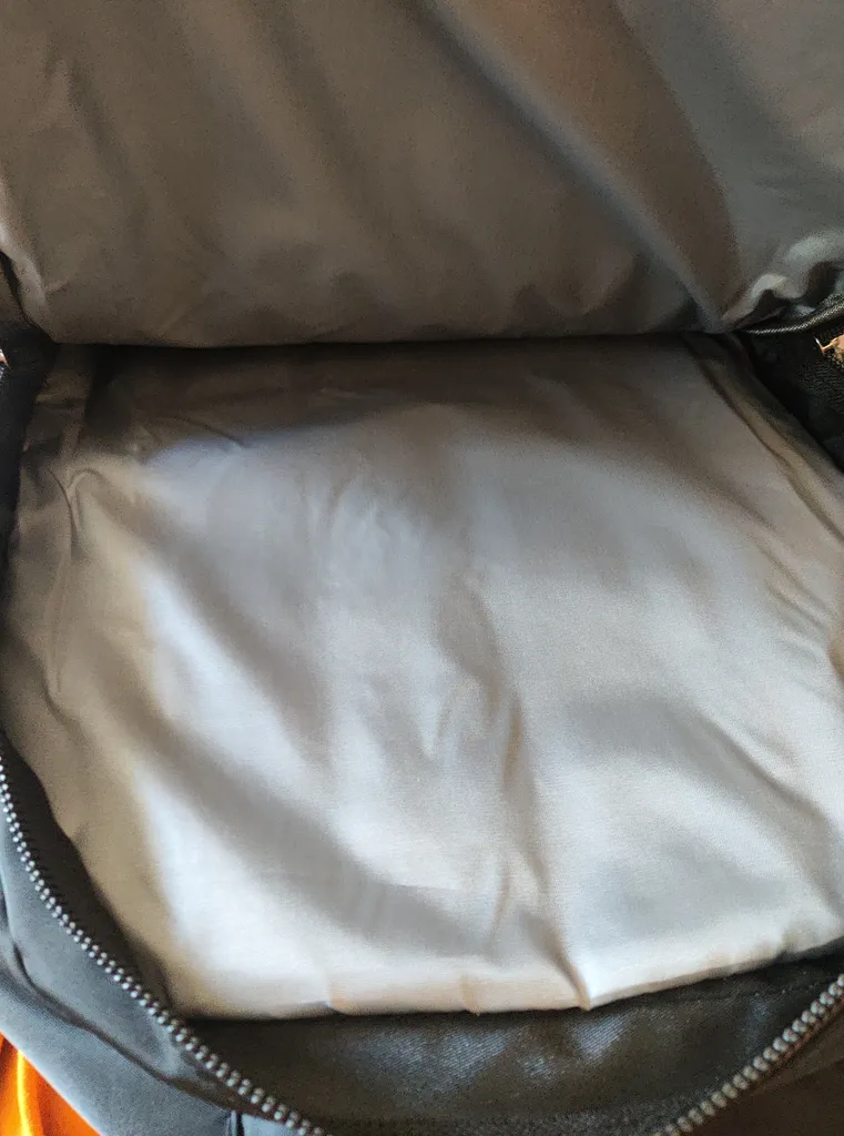 زیپ بزرگ اصلیش داخلش یه جای مثل یه جیب که تبلت اینا نگه داره توش هست