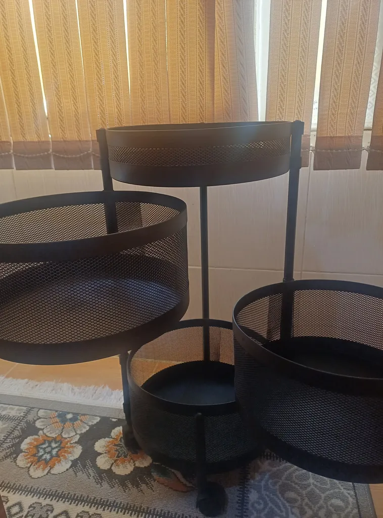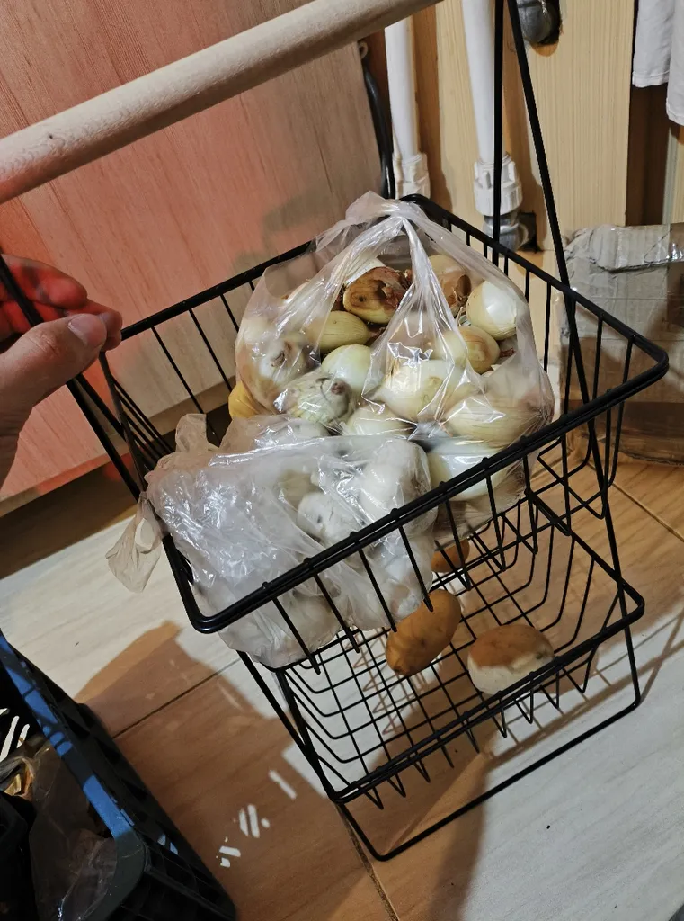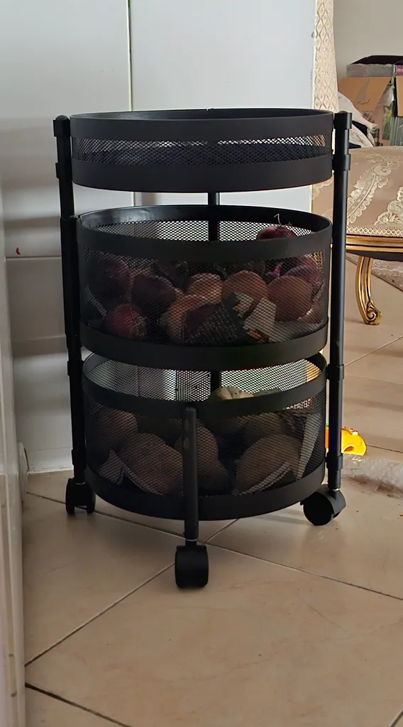 با اینکه جمع و جوره اما جاداره، به راحتی برای سیب زمینی پیاز می تونید استفاده کنید، و اینکه چون فاصله سیمهاش به هم نزدیکه و طول وعرض سیم داره، وسایل از توش نمیفته، بیرون قیمتش بیشتره، خلاصه اینکه من که راضیم از خریدم