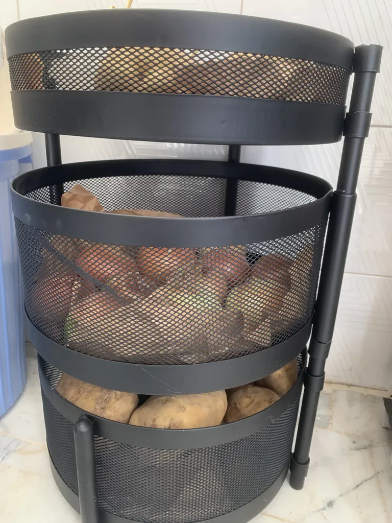 ریحانه ایراندوست : بر خلاف قیافه اش ک کوچیکه و جا کم میگیره ولی داخلش خیلی سیب زمینی جا میشه هر طبقه حداقل ۲تا۳کیلو جا داره