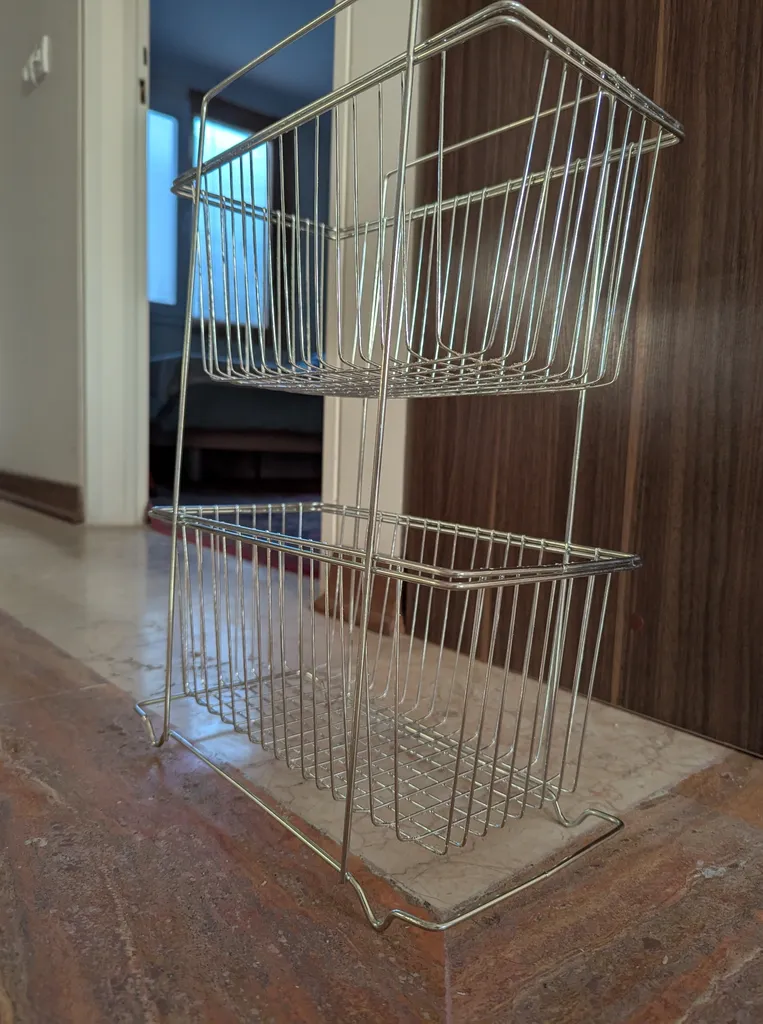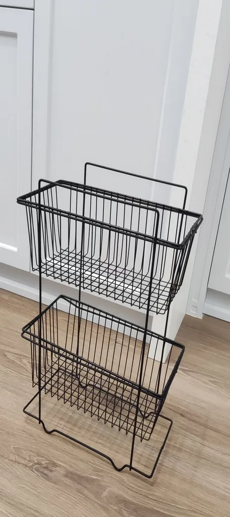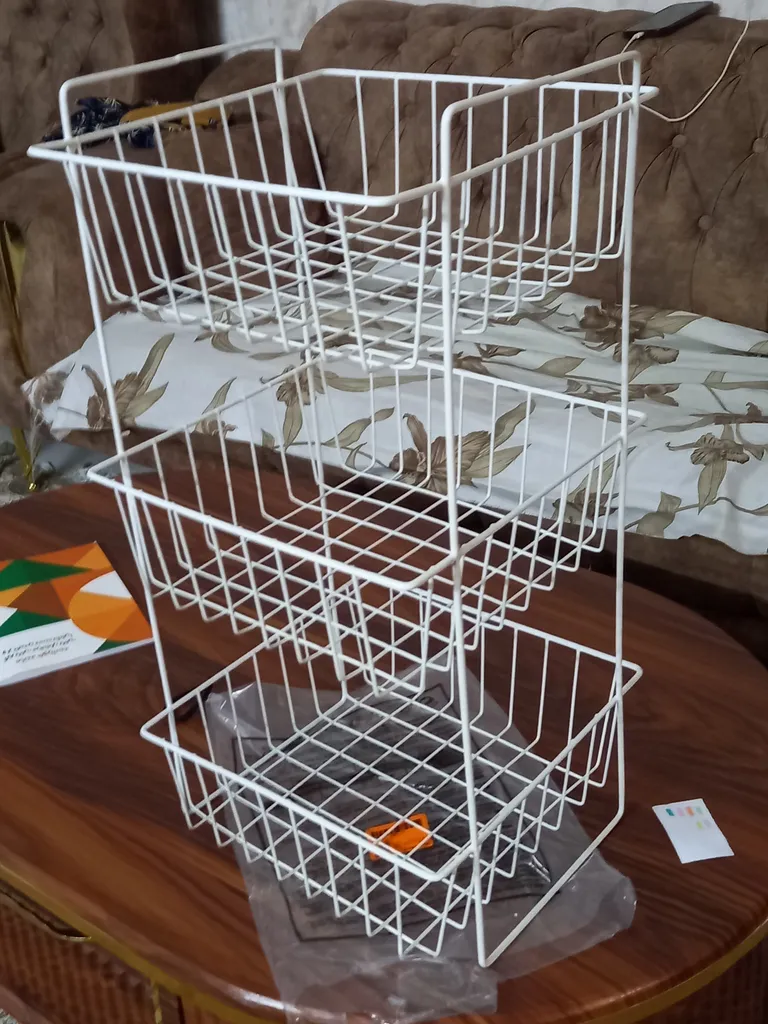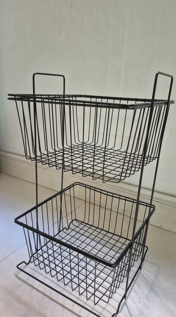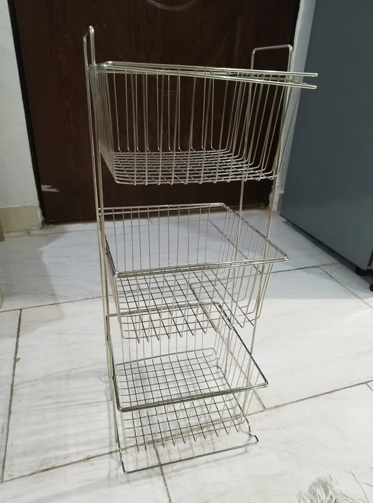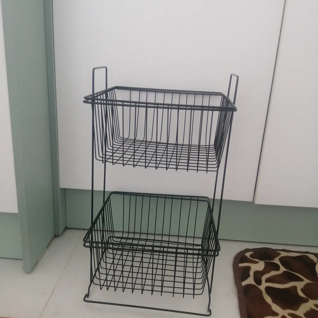 با اینکه جمع و جوره اما جاداره، به راحتی برای سیب زمینی پیاز می تونید استفاده کنید، و اینکه چون فاصله سیمهاش به هم نزدیکه و طول وعرض سیم داره، وسایل از توش نمیفته، بیرون قیمتش بیشتره، خلاصه اینکه من که راضیم از خریدم
