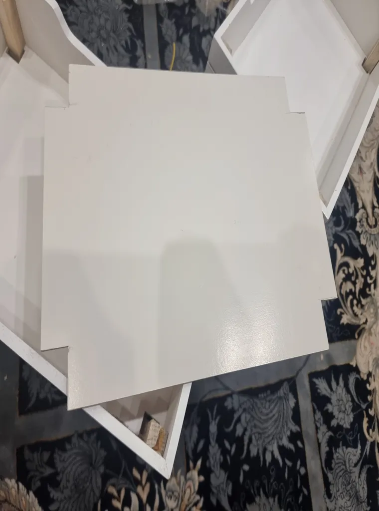 خریدار بدون نام : تفاوت کیفیت کار در عکس و نمونه ارسالی ؛ پایه های این کار در عکس خیلی تمیز و خوش رنگه ،شبیه به ام دی اف و روکش داره... اما ارسال شده اش چند تیکه تخته ی بدون رنگ ، بی کیفیت که یکی هم ترک خورده ست!! خیلی تو ذوقم خورد