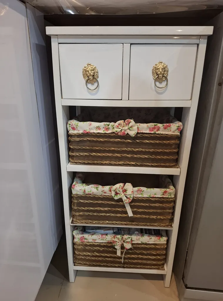 فاطمه پناهی : من عاااااااشق این سبک کارام. دقیقا همونی بود که میخواستم اصلا لق نمیزنه فقط شاید یه کوچولو قرینه نباشه که اصلاااا مهم نیست و دیده نمیشه. طبقاتش بزرگ و گود هستش و خیلی واسم جالب بود که میشه درشون آورد. من چون کفش کفی نداشت فعلا سیب زمینی پیازها رو با پلاستیکش گذاشتم ان شاالله در آینده کفش تخته میذارم که راحت بشه.