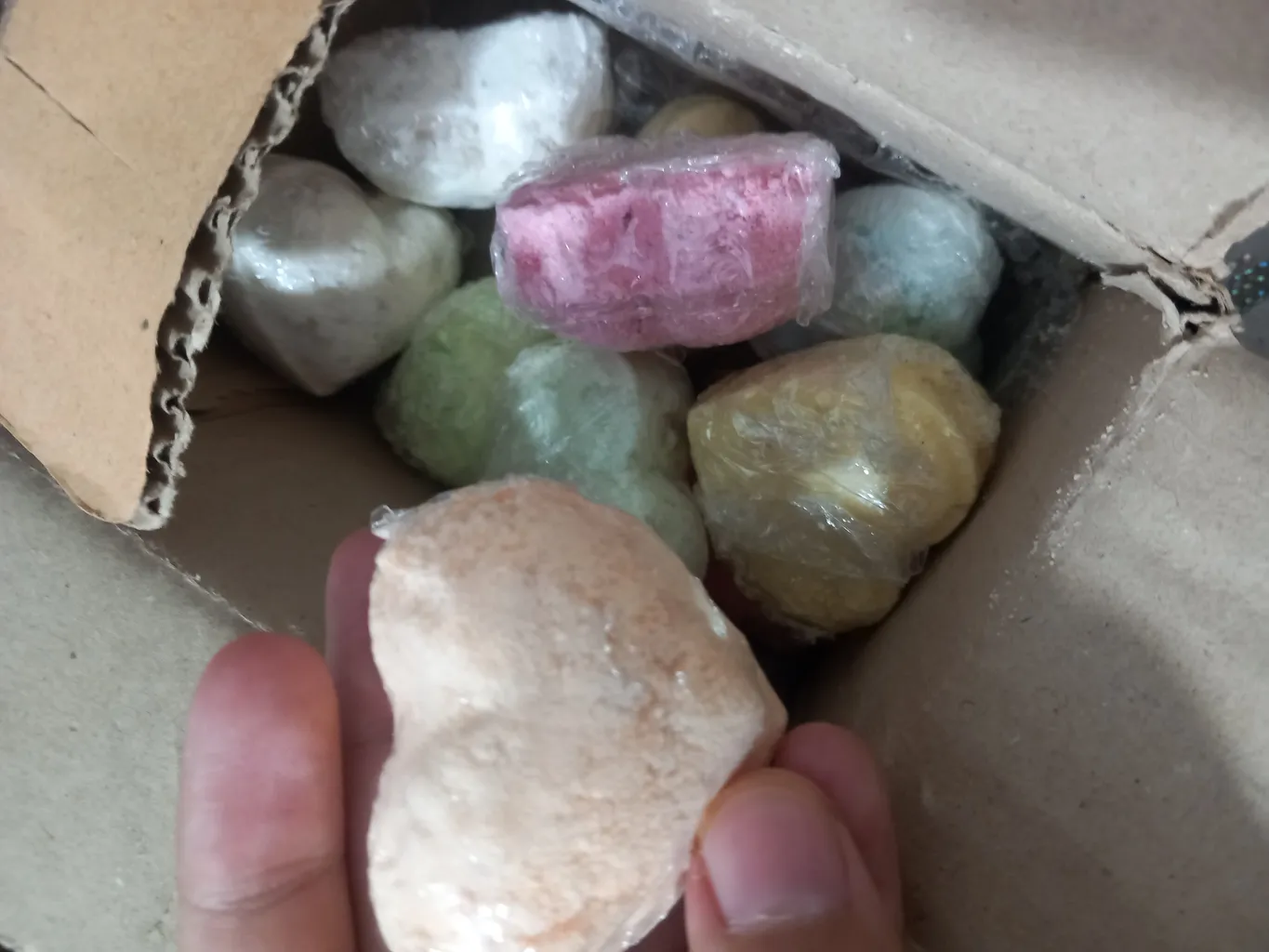 خریدار بدون نام : دفعه پیش خیلی خوب بود. همون را سفارش دادم. ایندفعه شرکت لوازم ارایش بانه را برایم انتخاب کرد. عکسش را میگذارم. توپک ها به وضوح کوچکتر هستند. بسته ۹۰۰ گرمی مگه میشه اندازه توپها آب بره؟؟؟؟ شده ۷۰۰ گرم با جعبه و مخلفات داخلش!!!!